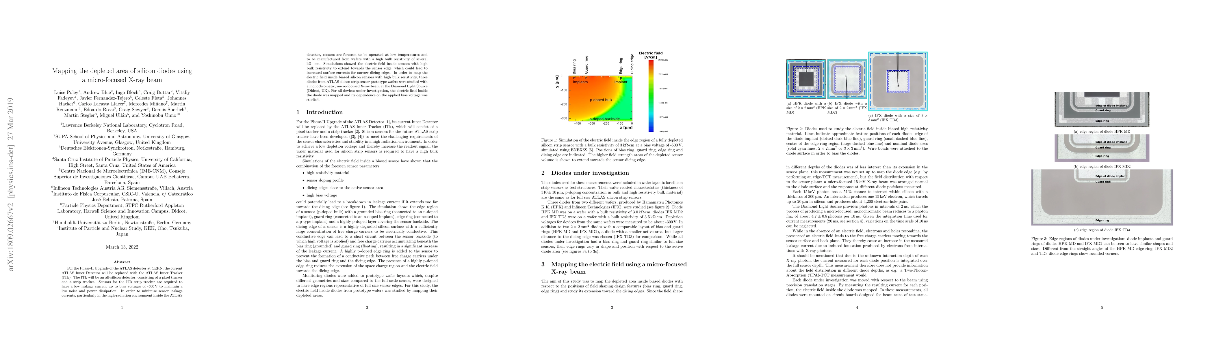 For the Phase-II Upgrade of the ATLAS detector at CERN, the current ATLAS Inner Detector will be replaced with the ATLAS Inner Tracker. The ATLAS Inner Tracker will be an all-silicon detector, consisting of a pixel tracker and a strip tracker. Sensors for the ITk strip tracker are required to have a low leakage current up to bias voltages of -700 V to maintain a low noise and power dissipation. In order to minimise sensor leakage currents, particularly in the high-radiation environment inside the ATLAS detector, sensors are foreseen to be operated at low temperatures and to be manufactured from wafers with a high bulk resistivity of several k{\Omega} cm. Simulations showed the electric field inside sensors with high bulk resistivity to extend towards the sensor edge, which could lead to increased surface currents for narrow dicing edges. In order to map the electric field inside biased silicon sensors with high bulk resistivity, three diodes from ATLAS silicon strip sensor prototype wafers were studied with a monochromatic, micro-focused X-ray beam at the Diamond Light Source. For all devices under investigation, the electric field inside the diode was mapped and its dependence on the applied bias voltage was studied. The findings showed that the electric field in each diode under investigation extended beyond its bias ring and reached the dicing edge.
