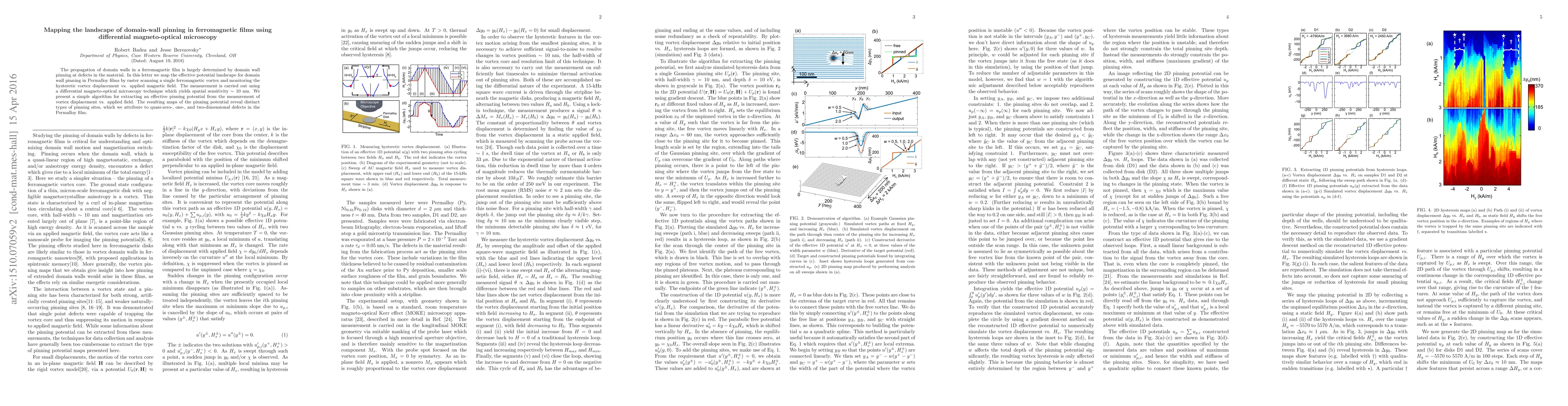 This research maps the domain wall pinning landscape in Permalloy films using differential magneto-optical microscopy to observe vortex displacement, revealing distinct pinning sites linked to various defect types. A new algorithm extracts an effective pinning potential from these measurements.