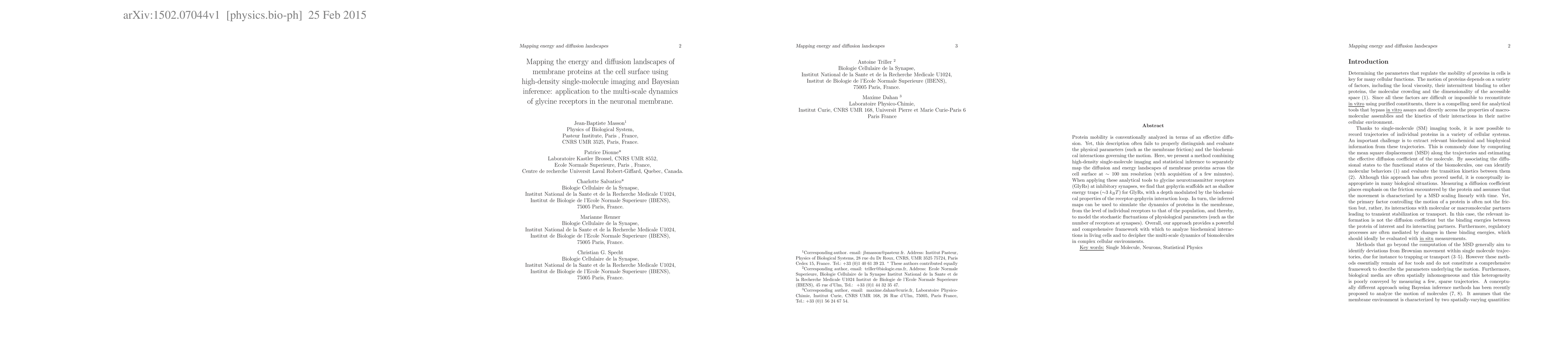 Protein mobility is conventionally analyzed in terms of an effective diffusion. Yet, this description often fails to properly distinguish and evaluate the physical parameters (such as the membrane friction) and the biochemical interactions governing the motion. Here, we present a method combining high-density single-molecule imaging and statistical inference to separately map the diffusion and energy landscapes of membrane proteins across the cell surface at ~100 nm resolution (with acquisition of a few minutes). When applying these analytical tools to glycine neurotransmitter receptors (GlyRs) at inhibitory synapses, we find that gephyrin scaffolds act as shallow energy traps (~3 kBT) for GlyRs, with a depth modulated by the biochemical properties of the receptor-gephyrin interaction loop. In turn, the inferred maps can be used to simulate the dynamics of proteins in the membrane, from the level of individual receptors to that of the population, and thereby, to model the stochastic fluctuations of physiological parameters (such as the number of receptors at synapses). Overall, our approach provides a powerful and comprehensive framework with which to analyze biochemical interactions in living cells and to decipher the multi-scale dynamics of biomolecules in complex cellular environments.