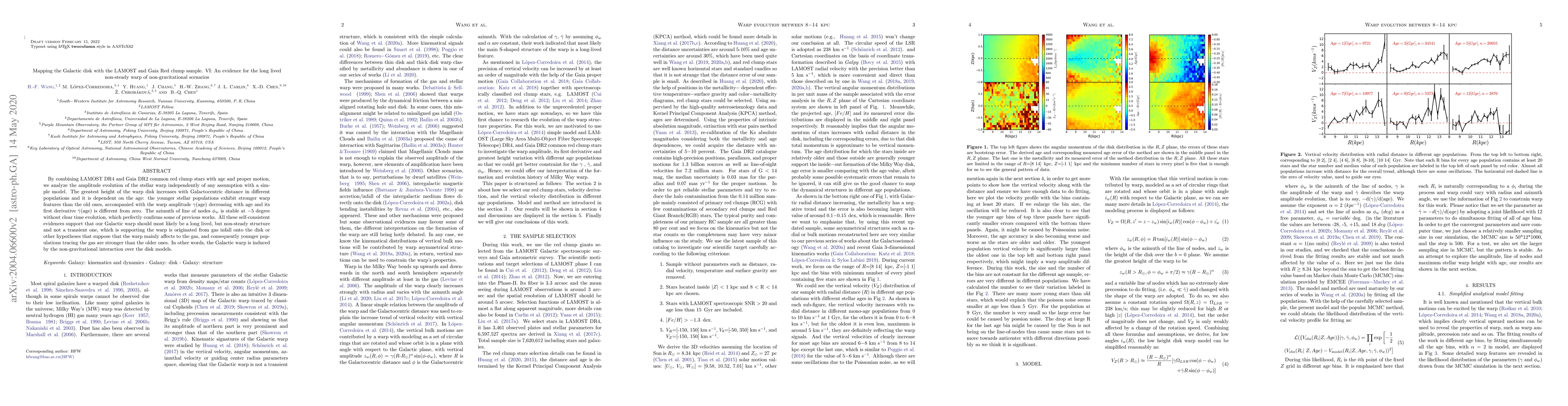 This paper combines LAMOST and Gaia data to study the Galactic warp using red clump stars, finding that the warp is a long-lived, non-steady structure dependent on age, with younger populations showing stronger warp features. The line of nodes remains stable, supporting non-gravitational origins for the warp.