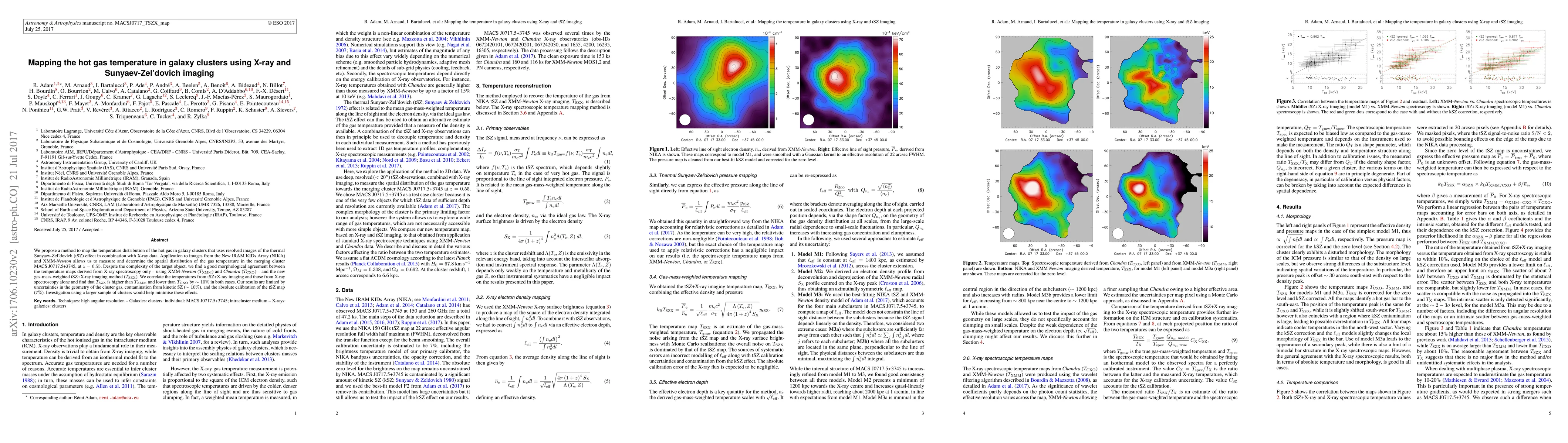 This paper proposes a method combining thermal Sunyaev-Zel'dovich effect and X-ray imaging to map the temperature distribution of hot gas in galaxy clusters. The method is applied to the merging cluster MACS J0717.5+3745, showing a $\sim 10\%$ difference between temperature maps derived from X-ray spectroscopy and the new tSZ+X-ray imaging method.