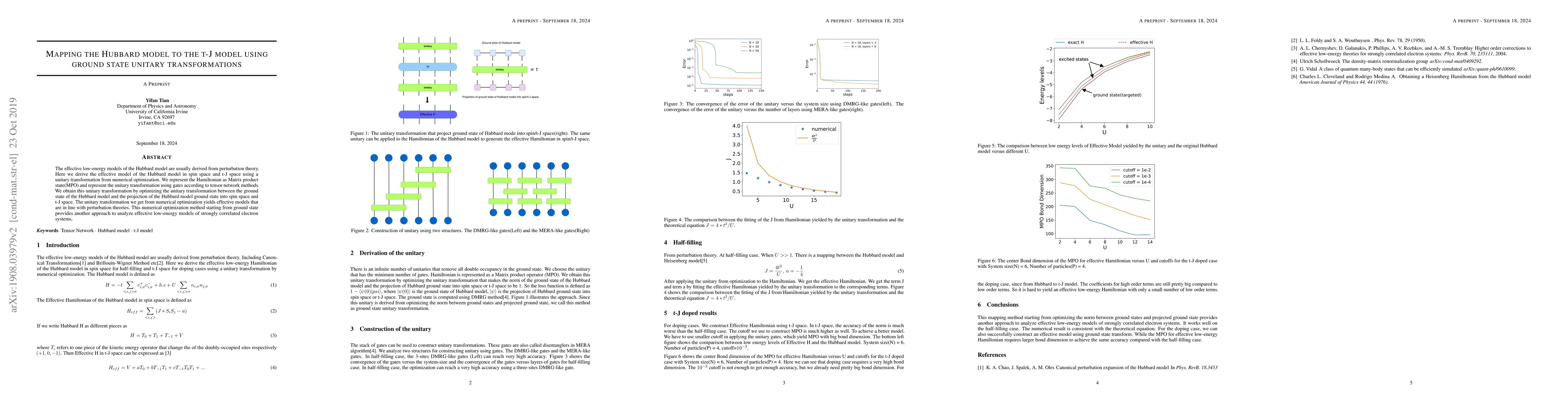 This paper derives the effective low-energy models of the Hubbard model using a unitary transformation optimized from the ground state, representing the Hamiltonian with Matrix product states and employing tensor network methods. The optimized unitary transformation aligns with perturbation theories, offering a new numerical approach for analyzing strongly correlated electron systems.