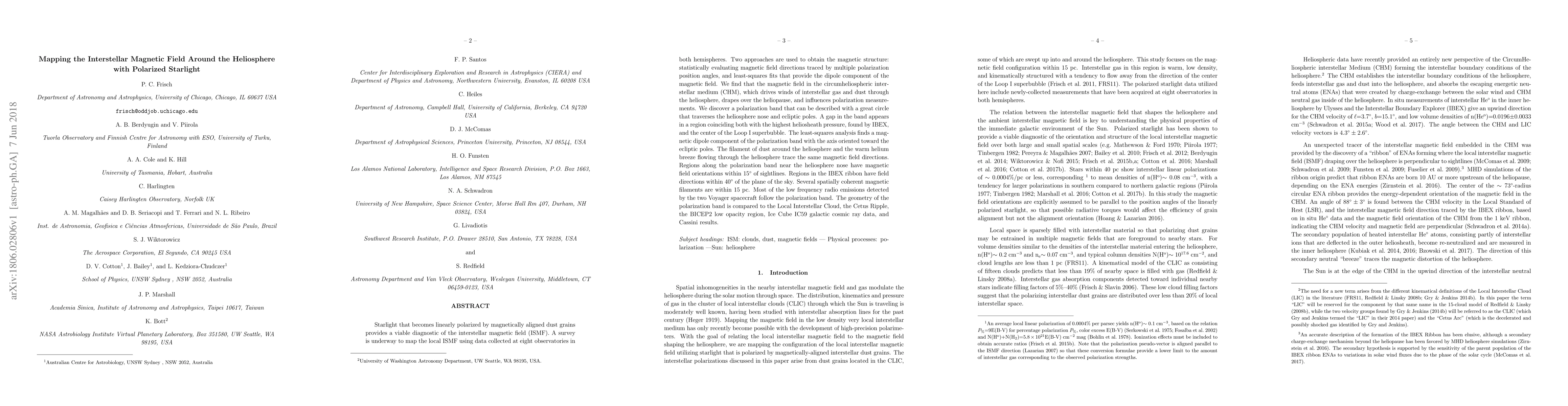This research maps the interstellar magnetic field around the heliosphere using polarized starlight, revealing a draped magnetic field over the heliopause and a polarization band traversing the heliosphere nose and ecliptic poles. The study identifies a gap in the band correlating with high heliosheath pressure and the Loop I superbubble, and finds a magnetic dipole component aligned with the ecliptic poles.