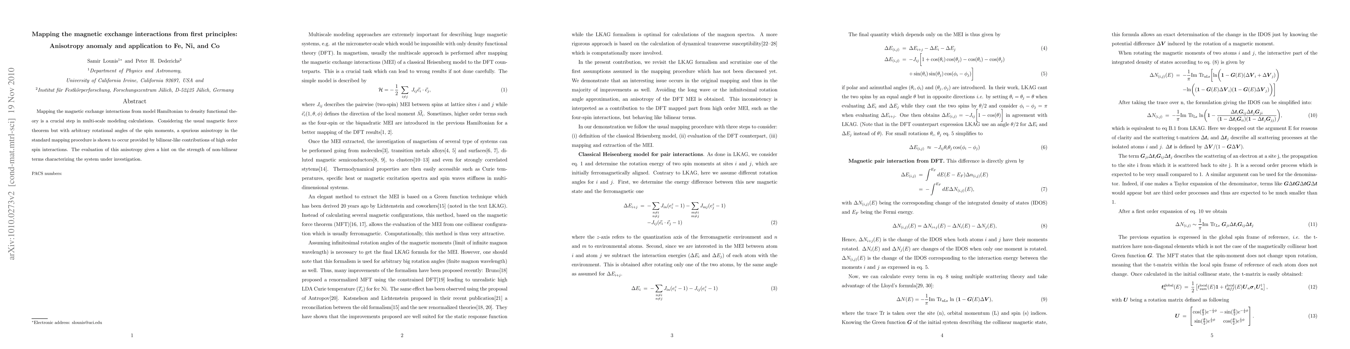Mapping the magnetic exchange interactions from model Hamiltonian to density functional theory is a crucial step in multi-scale modeling calculations. Considering the usual magnetic force theorem but with arbitrary rotational angles of the spin moments, a spurious anisotropy in the standard mapping procedure is shown to occur provided by bilinear-like contributions of high order spin interactions. The evaluation of this anisotropy gives a hint on the strength of non-bilinear terms characterizing the system under investigation.