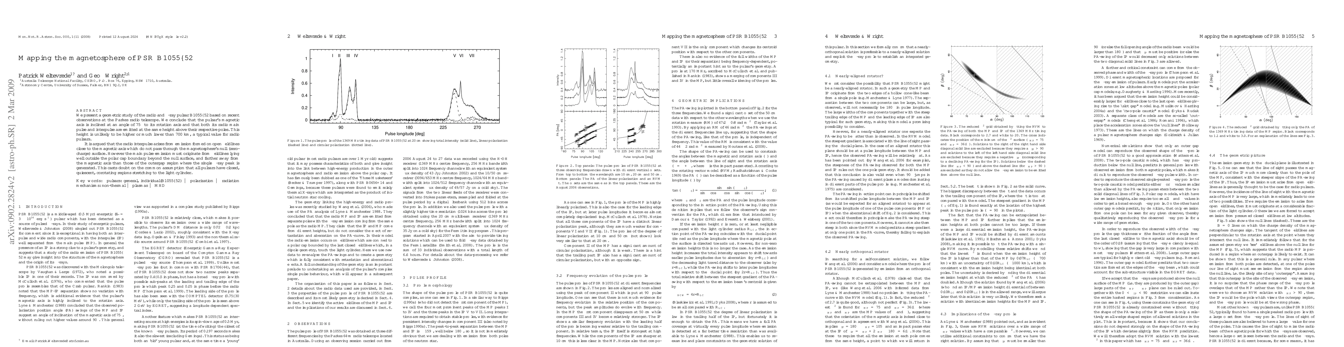 This study maps the magnetosphere of the pulsar PSR B1055-52, revealing a 75-degree inclination between its magnetic and rotation axes. It finds that both radio pulses originate at a similar height of around 700 km above the poles, challenging the notion of closed, quiescent regions in pulsar magnetospheres.