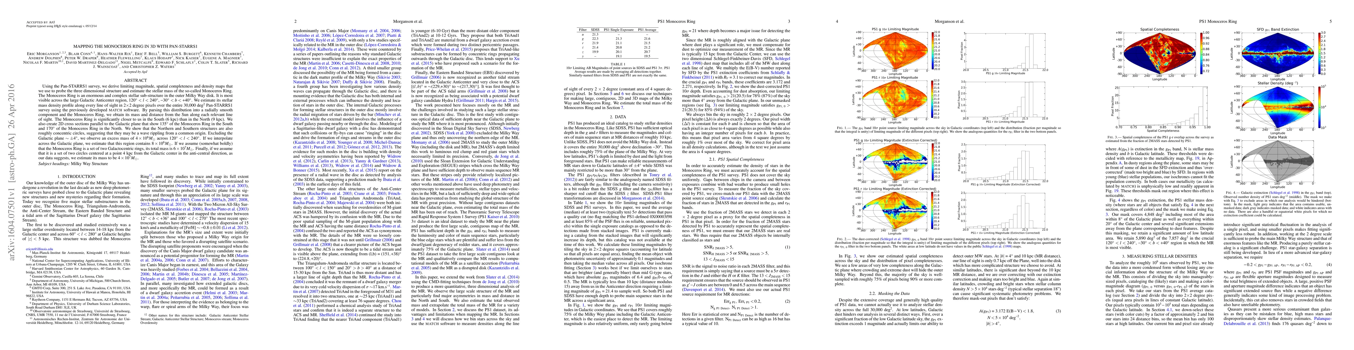 Using the Pan-STARRS1 survey, we derive limiting magnitude, spatial completeness and density maps that we use to probe the three dimensional structure and estimate the stellar mass of the so-called Monoceros Ring. The Monoceros Ring is an enormous and complex stellar sub-structure in the outer Milky Way disk. It is most visible across the large Galactic Anticenter region, 120 < l < 240 degrees, -30 < b < +40 degrees. We estimate its stellar mass density profile along every line of sight in 2 X 2 degree pixels over the entire 30,000 square degree Pan-STARRS1 survey using the previously developed MATCH software. By parsing this distribution into a radially smooth component and the Monoceros Ring, we obtain its mass and distance from the Sun along each relevant line of sight. The Monoceros Ring is significantly closer to us in the South (6 kpc) than in the North (9 kpc). We also create 2D cross sections parallel to the Galactic plane that show 135 degrees of the Monoceros Ring in the South and 170 degrees of the Monoceros Ring in the North. We show that the Northern and Southern structures are also roughly concentric circles, suggesting that they may be a wave rippling from a common origin. Excluding the Galactic plane, we observe an excess stellar mass of 4 million solar masses across 120 < l < 240 degrees. If we interpolate across the Galactic plane, we estimate that this region contains 8 million solar masses. If we assume (somewhat boldly) that the Monoceros Ring is a set of two Galactocentric rings, its total stellar mass is 60 million solar masses. Finally, if we assume that it is a set of two circles centered at a point 4 kpc from the Galactic center in the anti-central direction, as our data suggests, we estimate its stellar mass to be 40 million solar masses.