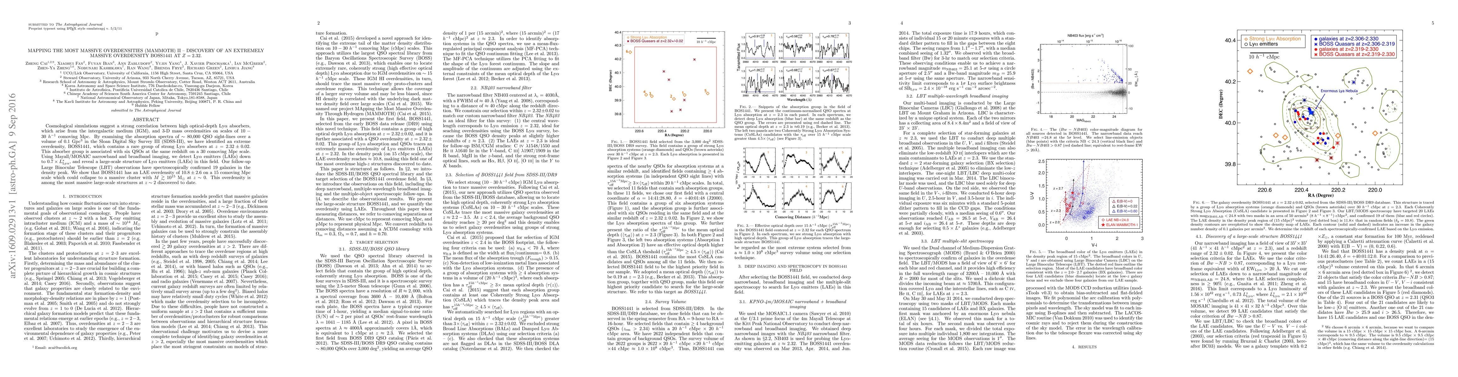 The MAMMOTH II study identifies an extremely massive overdensity, BOSS1441, at $z=2.32$, characterized by a rare group of strong Ly$\alpha$ absorbers and associated with six QSOs. Follow-up observations reveal a significant overdensity of Ly$\alpha$ emitters, suggesting a potential future massive cluster.