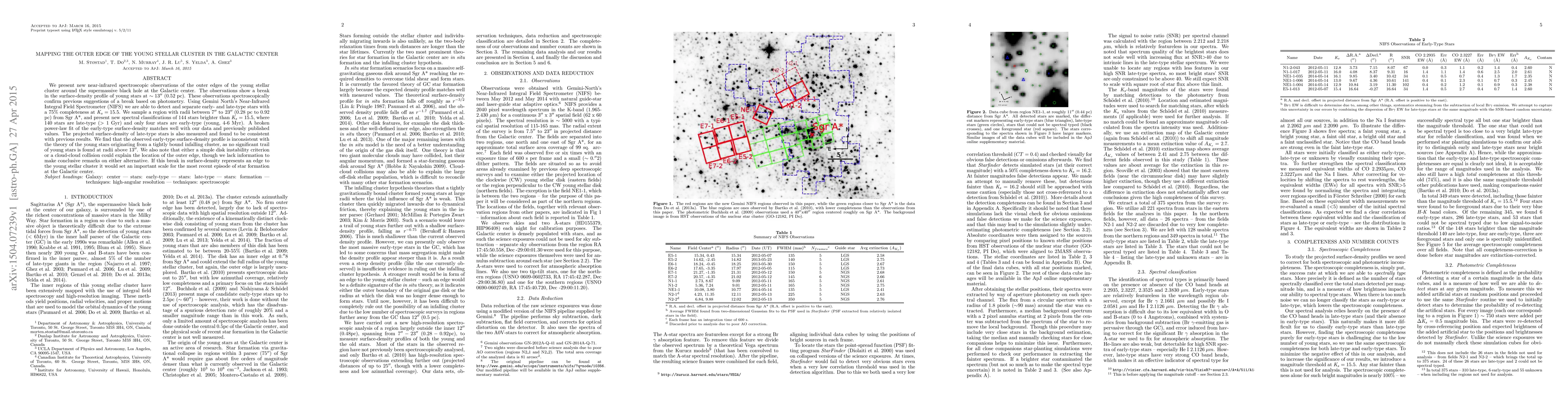 This paper uses near-infrared spectroscopy to map the outer edge of a young stellar cluster near the Galactic center's supermassive black hole, identifying a surface-density break at 13 arcsec. The study finds 140 late-type stars and only four early-type stars, suggesting the cluster's edge may not support a tightly bound infalling cluster theory.