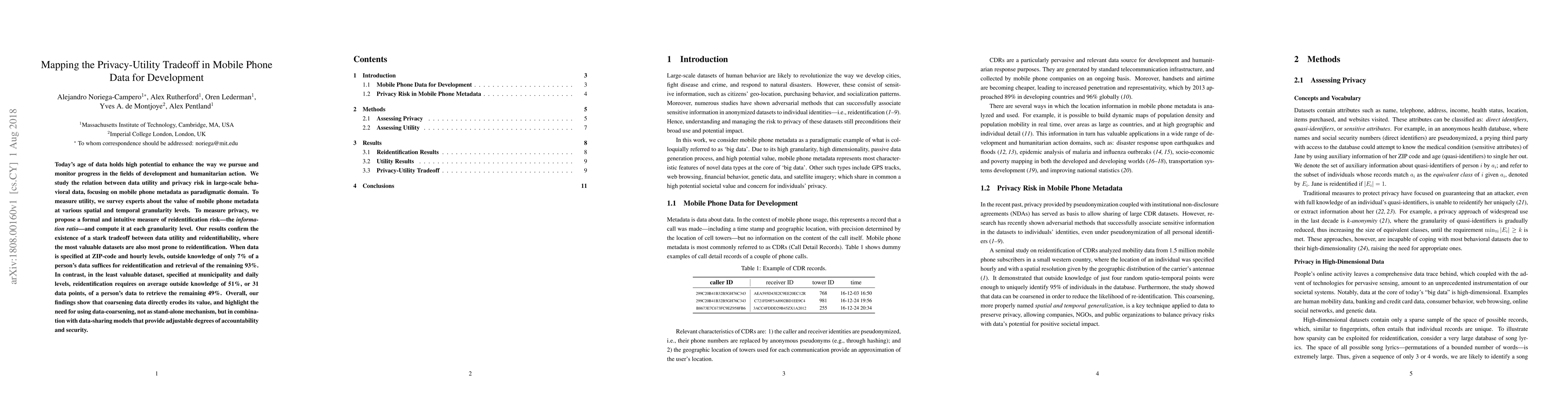 Mobile phone metadata data is highly valuable for development but also vulnerable to reidentification risks, with coarsening data eroding its value and requiring additional knowledge for reidentification; the study highlights the need for adjusting accountability and security in data-sharing models.