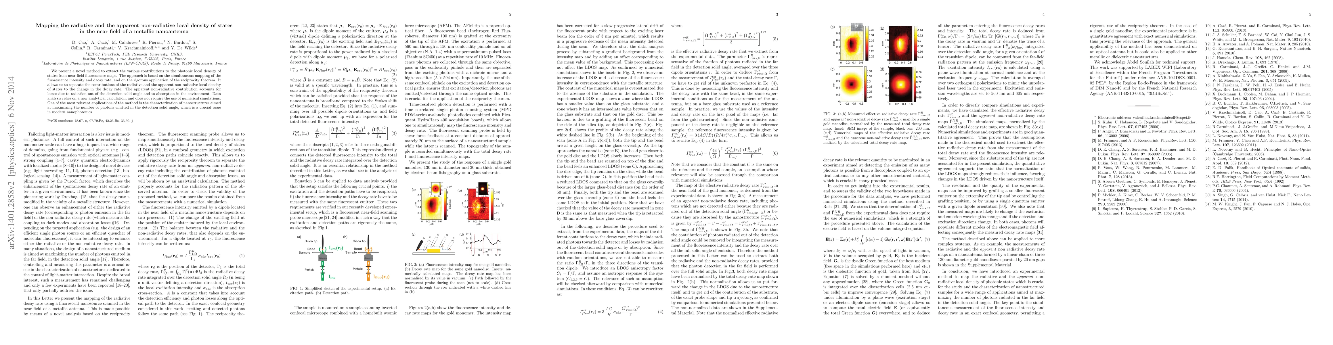 This paper introduces a novel method for mapping the radiative and apparent non-radiative local density of states in the near field of metallic nanoantennas using near-field fluorescence maps. The method separates radiative and non-radiative contributions based on fluorescence intensity and decay rate, employing the reciprocity theorem and analytical calculations without numerical simulations.