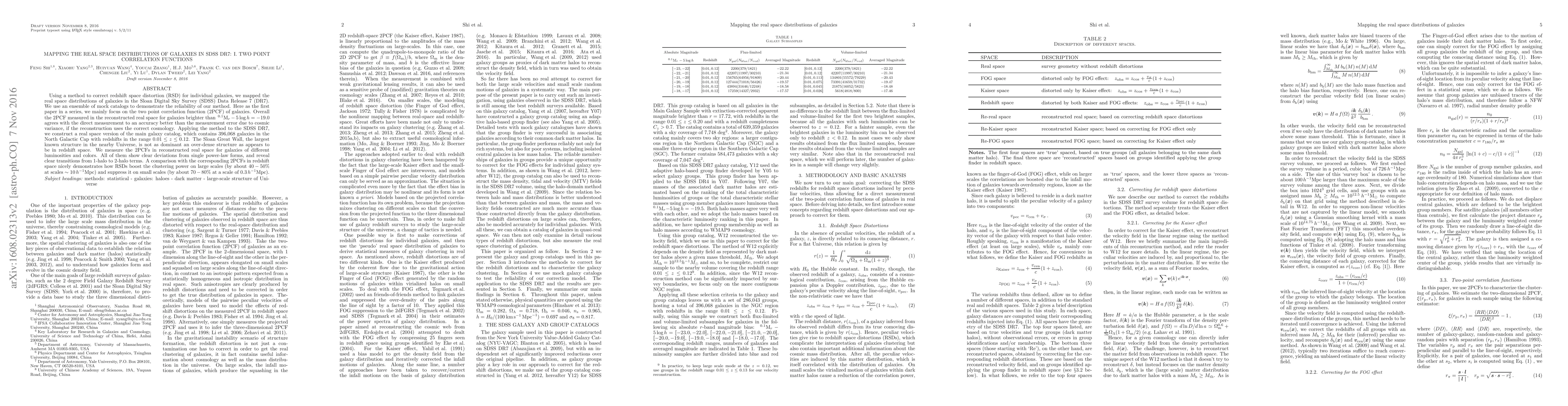 This paper corrects redshift space distortion to map the real space distributions of galaxies in SDSS DR7, focusing on the two-point correlation function (2PCF). The method accurately reconstructs the real space galaxy distribution, showing that the Sloan Great Wall's prominence diminishes in real space compared to redshift space. The 2PCF analysis reveals transitions from 1-halo to 2-halo terms and demonstrates how redshift space distortion enhances clustering on large scales while suppressing it on small scales.