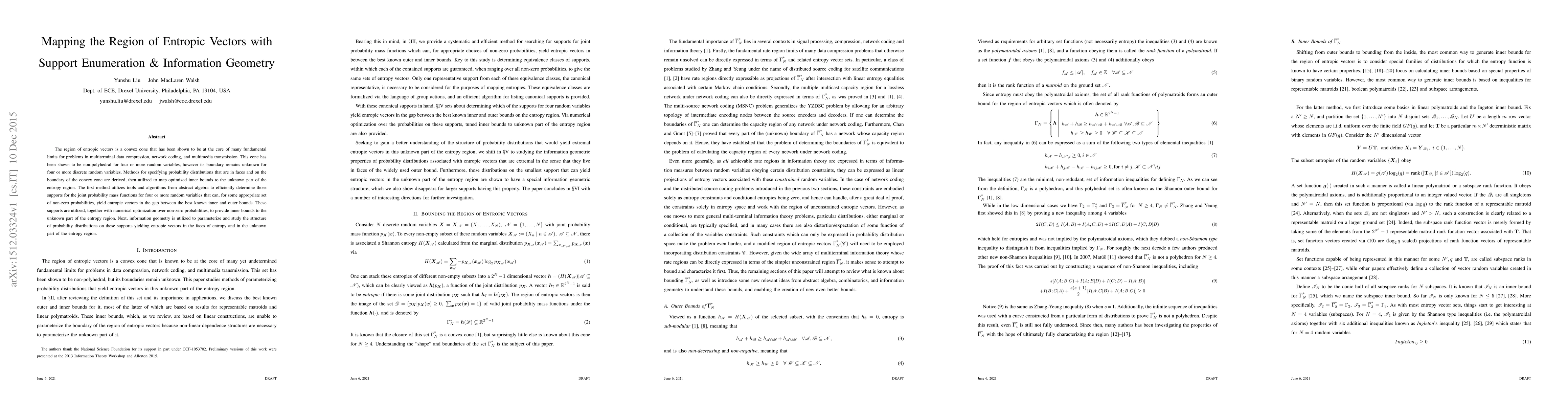 This paper explores the convex cone of entropic vectors crucial for multiterminal data compression, revealing its non-polyhedral nature for four or more random variables. It develops methods to identify supports for joint probability distributions and uses information geometry to map optimized inner bounds to the unknown boundary of this entropy region.
