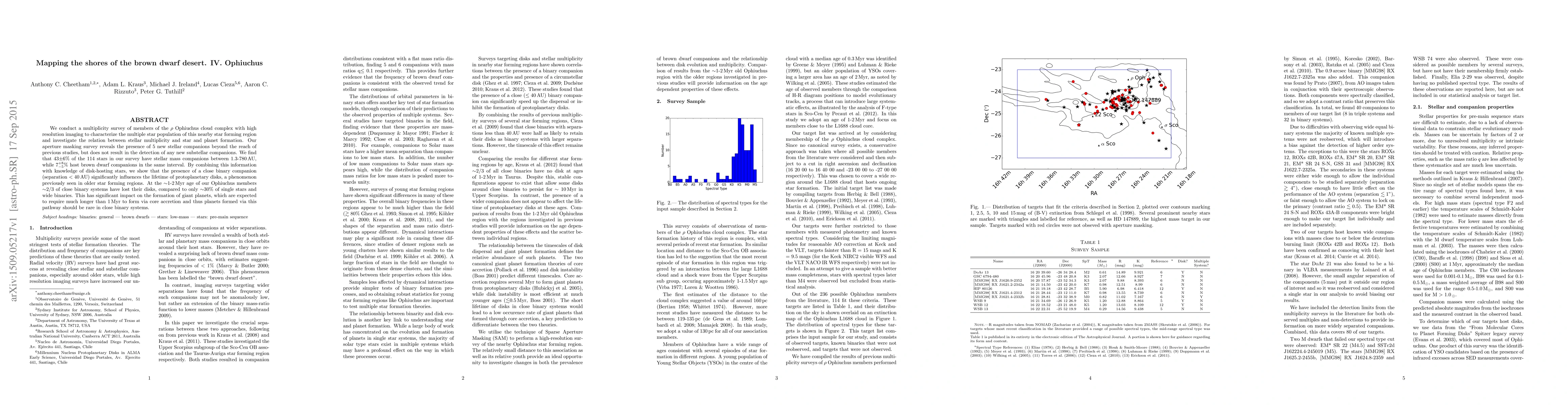 We conduct a multiplicity survey of members of the rho Ophiuchus cloud complex with high resolution imaging to characterize the multiple star population of this nearby star forming region and investigate the relation between stellar multiplicity and star and planet formation. Our aperture masking survey reveals the presence of 5 new stellar companions beyond the reach of previous studies, but does not result in the detection of any new substellar companions. We find that 43+/-6% of the 114 stars in our survey have stellar mass companions between 1.3-780AU, while 7 (+8 -5)% host brown dwarf companions in the same interval. By combining this information with knowledge of disk-hosting stars, we show that the presence of a close binary companion (separation < 40 AU) significantly influences the lifetime of protoplanetary disks, a phenomenon previously seen in older star forming regions. At the ~1-2Myr age of our Ophiuchus members ~2/3 of close binary systems have lost their disks, compared to only ~30% of single stars and wide binaries. This has significant impact on the formation of giant planets, which are expected to require much longer than 1 Myr to form via core accretion and thus planets formed via this pathway should be rare in close binary systems.