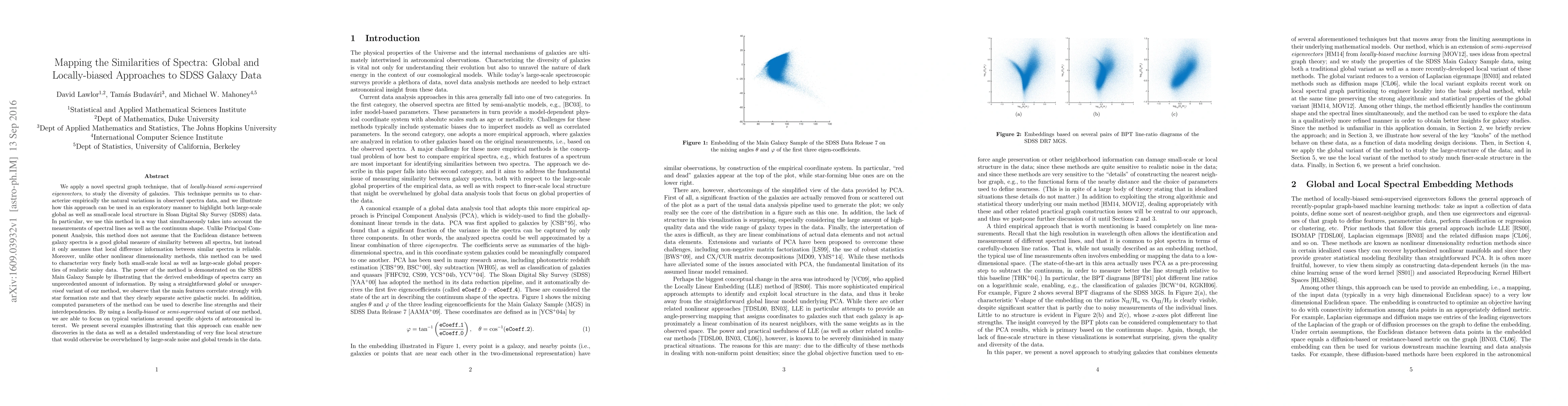 We apply a novel spectral graph technique, that of locally-biased semi-supervised eigenvectors, to study the diversity of galaxies. This technique permits us to characterize empirically the natural variations in observed spectra data, and we illustrate how this approach can be used in an exploratory manner to highlight both large-scale global as well as small-scale local structure in Sloan Digital Sky Survey (SDSS) data. We use this method in a way that simultaneously takes into account the measurements of spectral lines as well as the continuum shape. Unlike Principal Component Analysis, this method does not assume that the Euclidean distance between galaxy spectra is a good global measure of similarity between all spectra, but instead it only assumes that local difference information between similar spectra is reliable. Moreover, unlike other nonlinear dimensionality methods, this method can be used to characterize very finely both small-scale local as well as large-scale global properties of realistic noisy data. The power of the method is demonstrated on the SDSS Main Galaxy Sample by illustrating that the derived embeddings of spectra carry an unprecedented amount of information. By using a straightforward global or unsupervised variant, we observe that the main features correlate strongly with star formation rate and that they clearly separate active galactic nuclei. Computed parameters of the method can be used to describe line strengths and their interdependencies. By using a locally-biased or semi-supervised variant, we are able to focus on typical variations around specific objects of astronomical interest. We present several examples illustrating that this approach can enable new discoveries in the data as well as a detailed understanding of very fine local structure that would otherwise be overwhelmed by large-scale noise and global trends in the data.