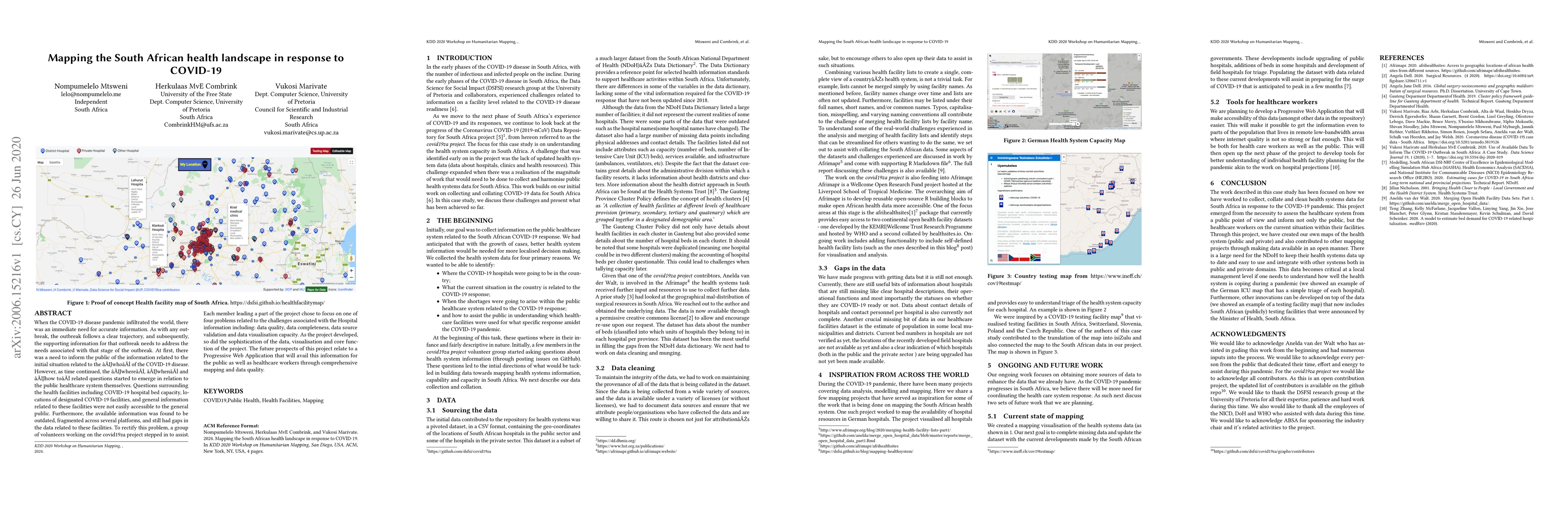 When the COVID-19 disease pandemic infiltrated the world, there was an immediate need for accurate information. As with any outbreak, the outbreak follows a clear trajectory, and subsequently, the supporting information for that outbreak needs to address the needs associated with that stage of the outbreak. At first, there was a need to inform the public of the information related to the initial situation related to the "who" of the COVID-19 disease. However, as time continued, the "where", "when" and "how to" related questions started to emerge in relation to the public healthcare system themselves. Questions surrounding the health facilities including COVID-19 hospital bed capacity, locations of designated COVID-19 facilities, and general information related to these facilities were not easily accessible to the general public. Furthermore, the available information was found to be outdated, fragmented across several platforms, and still had gaps in the data related to these facilities. To rectify this problem, a group of volunteers working on the covid19za project stepped in to assist. Each member leading a part of the project chose to focus on one of four problems related to the challenges associated with the Hospital information including: data quality, data completeness, data source validation and data visualisation capacity. As the project developed, so did the sophistication of the data, visualisation and core function of the project. The future prospects of this project relate to a Progressive Web Application that will avail this information for the public as well as healthcare workers through comprehensive mapping and data quality.