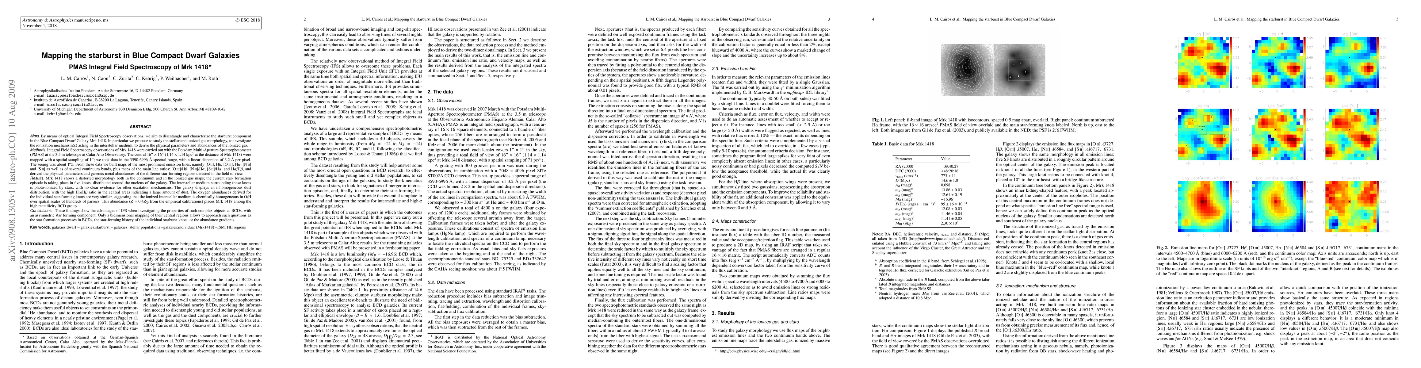 This study uses optical Integral Field Spectroscopy to analyze the starburst in the Blue Compact Dwarf Galaxy Mrk 1418, revealing five star-forming knots and indicating photo-ionization by stars. The galaxy shows chemically homogeneous oxygen abundances, placing it among the high metallicity BCD group.