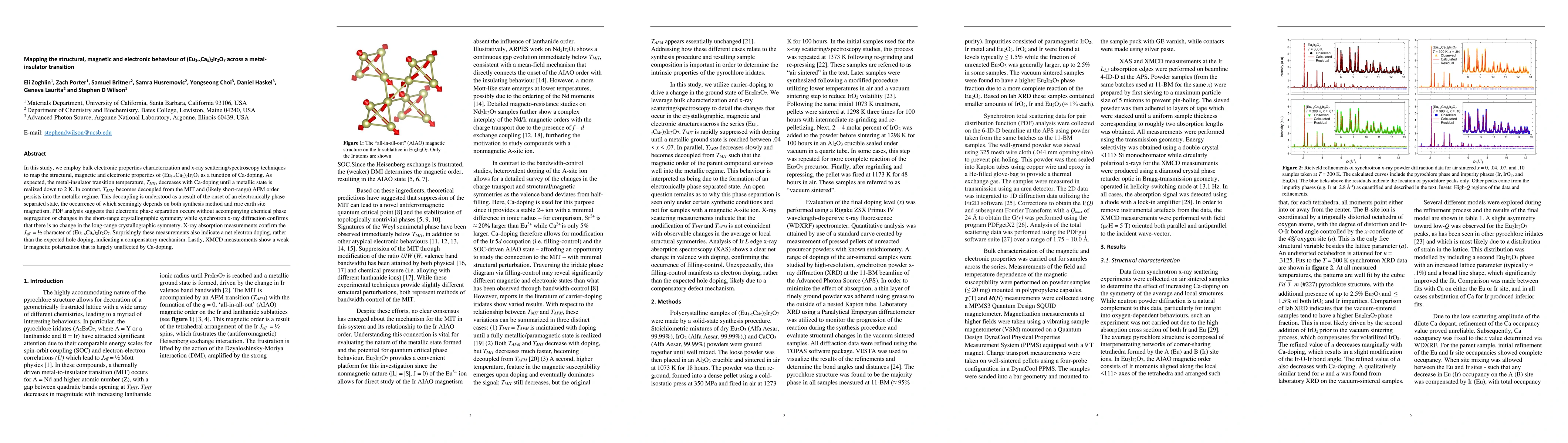 In this study, we employ bulk electronic properties characterization and x-ray scattering/spectroscopy techniques to map the structural, magnetic and electronic properties of (Eu$_{1-x}$Ca$_{x}$)$_{2}$Ir$_{2}$O$_{7}$ as a function of Ca-doping. As expected, the metal-insulator transition temperature, $T_{MIT}$, decreases with Ca-doping until a metallic state is realized down to 2 K. In contrast, $T_{AFM}$ becomes decoupled from the MIT and (likely short-range) AFM order persists into the metallic regime. This decoupling is understood as a result of the onset of an electronically phase separated state, the occurrence of which seemingly depends on both synthesis method and rare earth site magnetism. PDF analysis suggests that electronic phase separation occurs without accompanying chemical phase segregation or changes in the short-range crystallographic symmetry while synchrotron x-ray diffraction confirms that there is no change in the long-range crystallographic symmetry. X-ray absorption measurements confirm the $J_{eff}$ = 1/2 character of (Eu$_{1-x}$Ca$_{x}$)$_{2}$Ir$_{2}$O$_{7}$. Surprisingly these measurements also indicate a net electron doping, rather than the expected hole doping, indicating a compensatory mechanism. Lastly, XMCD measurements show a weak Ir magnetic polarization that is largely unaffected by Ca-doping.