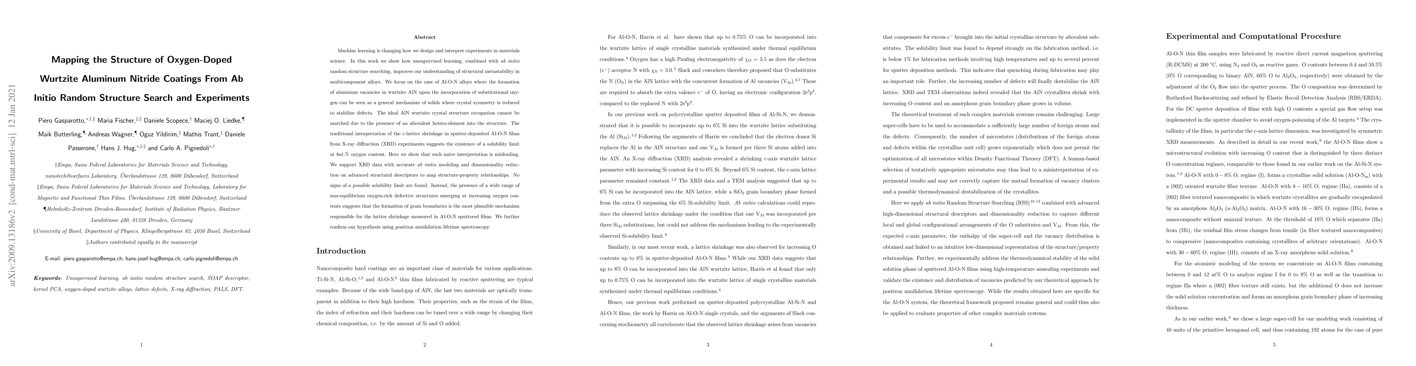 This study combines machine learning with ab initio simulations to explore the structural metastability of oxygen-doped wurtzite aluminum nitride coatings. Contrary to traditional XRD interpretations suggesting a solubility limit, the analysis reveals that lattice shrinkage is due to the formation of grain boundaries in non-equilibrium oxygen-rich defective structures.