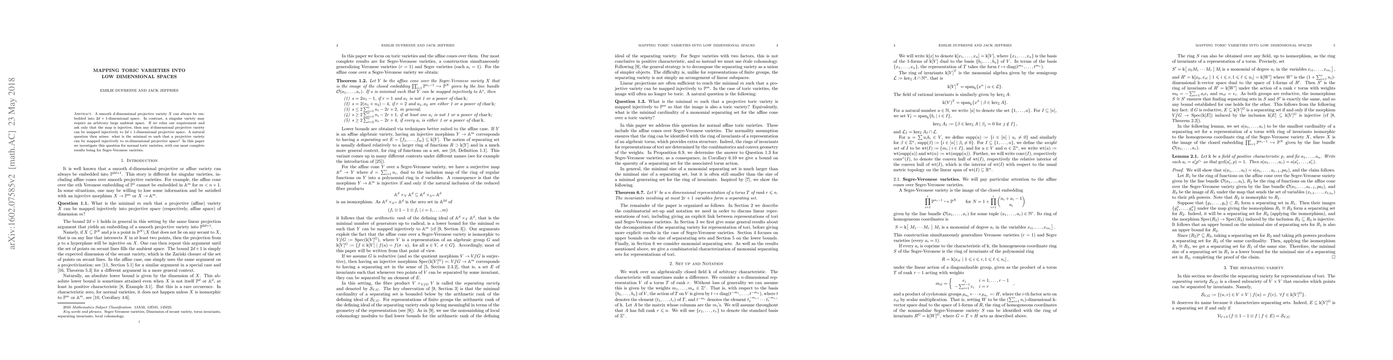 A smooth $d$-dimensional projective variety $X$ can always be embedded into $2d+1$-dimensional space. In contrast, a singular variety may require an arbitrary large ambient space. If we relax our requirement and ask only that the map is injective, then any $d$-dimensional projective variety can be mapped injectively to $2d+1$-dimensional projective space. A natural question then arises: what is the minimal $m$ such that a projective variety can be mapped injectively to $m$-dimensional projective space? In this paper we investigate this question for normal toric varieties, with our most complete results being for Segre-Veronese varieties.