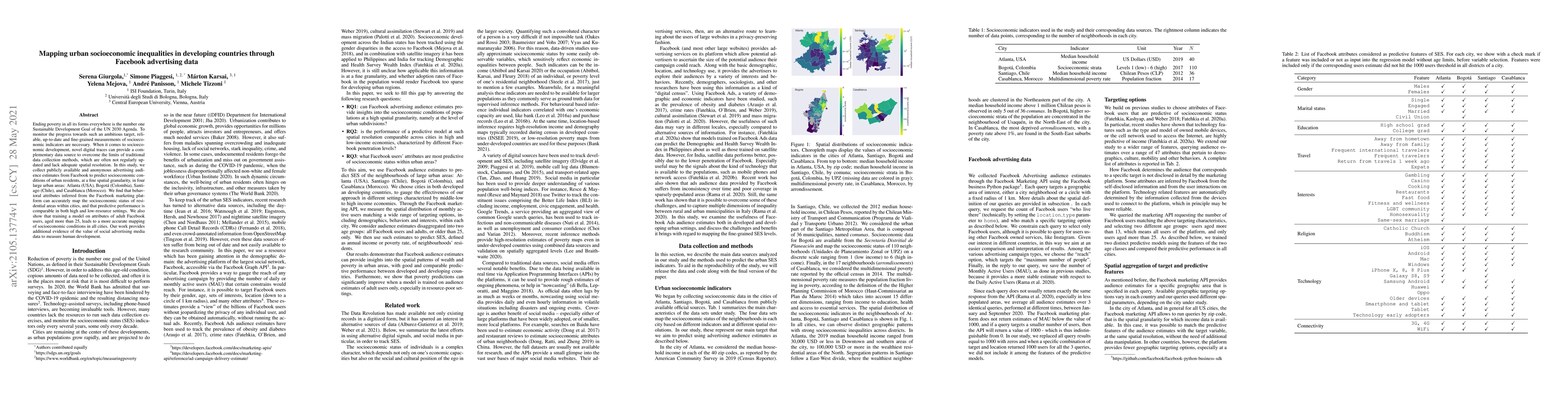 Researchers used Facebook advertising data to map socioeconomic inequalities in four cities, finding that behavioral attributes can accurately predict residential areas' socioeconomic status. The study provides evidence of the value of social media data for measuring human development.