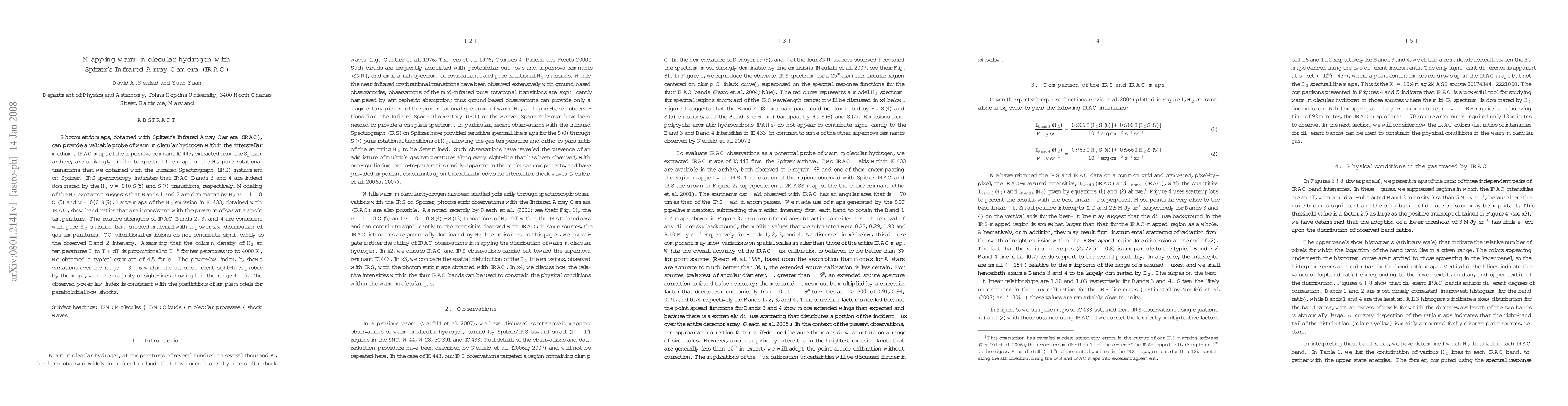 Researchers mapped warm molecular hydrogen in interstellar space using Spitzer's IRAC camera, finding that infrared band ratios suggest a power-law distribution of gas temperatures.
