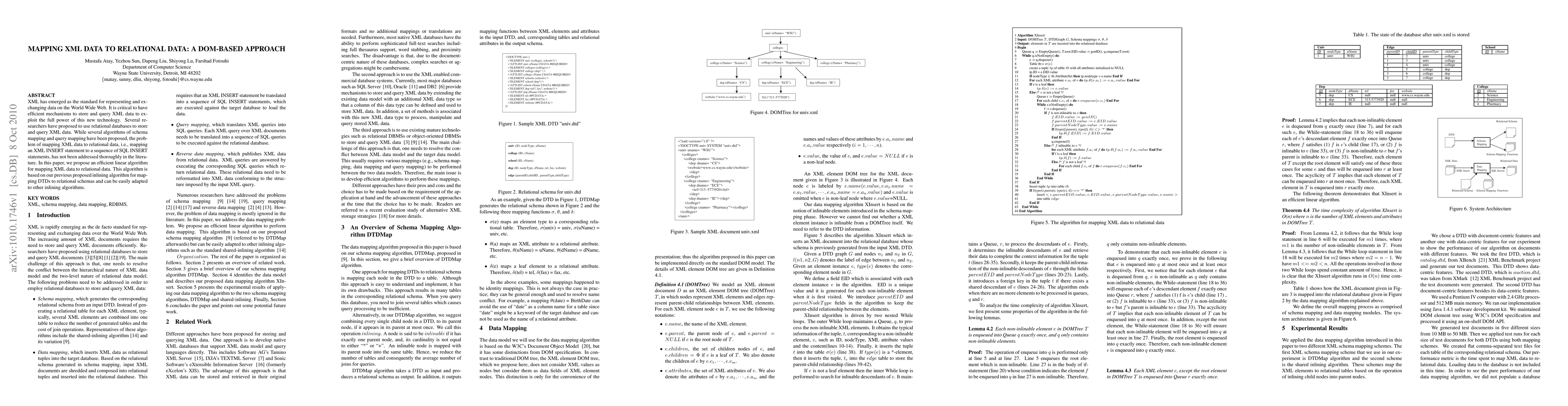 This paper proposes an efficient linear algorithm for mapping XML data to relational data, focusing on converting XML INSERT statements into SQL INSERT statements. The approach builds on a previously developed inlining algorithm for mapping DTDs to relational schemas.