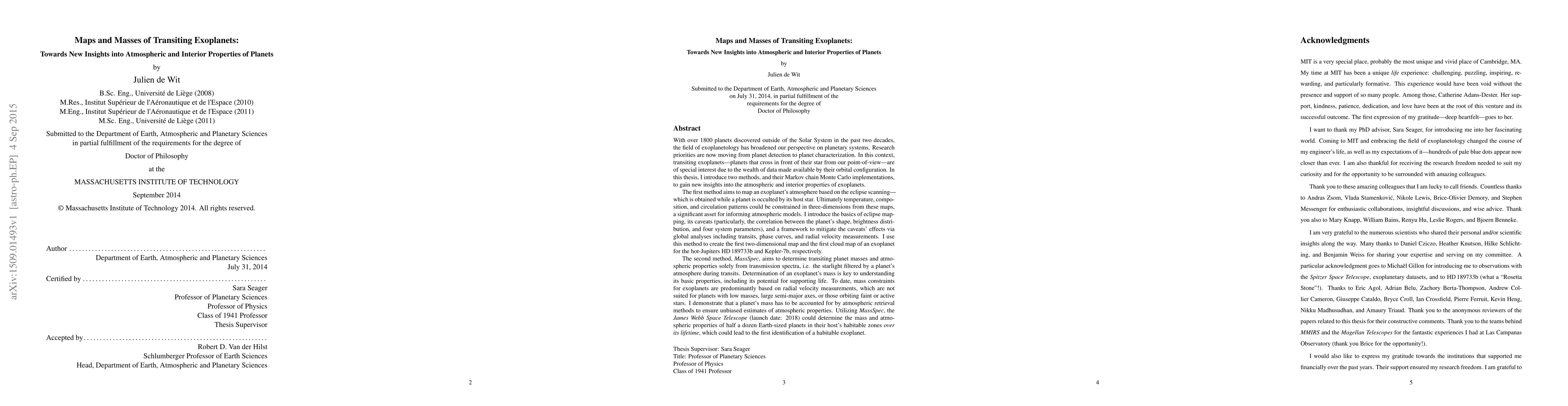 This paper introduces two innovative methods for characterizing exoplanets: eclipse mapping to create atmospheric 2D and cloud maps, and MassSpec to determine planet masses from transmission spectra, potentially identifying habitable exoplanets with the James Webb Space Telescope.