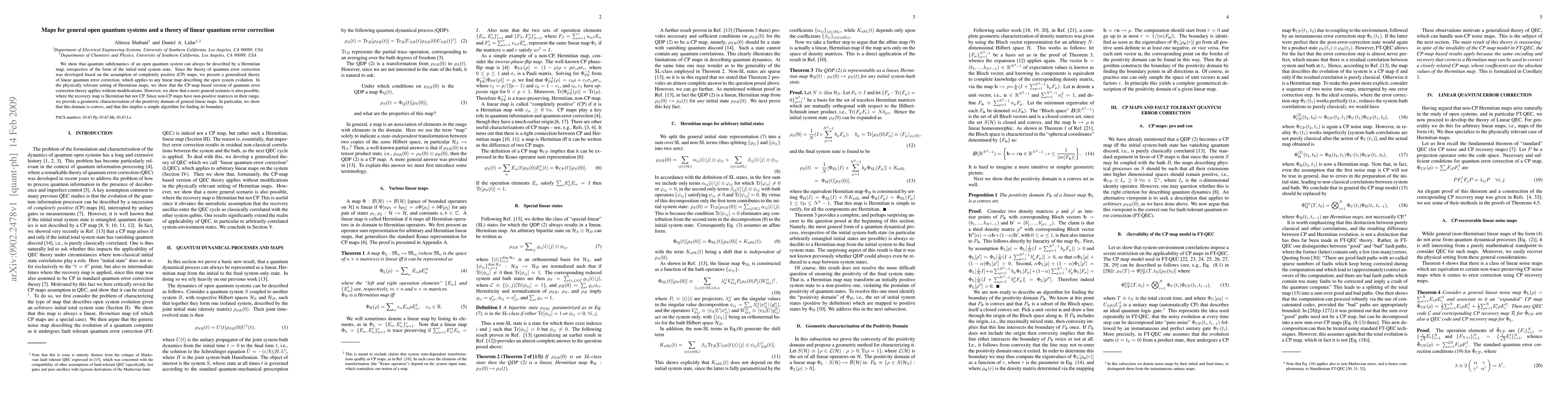 We show that quantum subdynamics of an open quantum system can always be described by a Hermitian map, irrespective of the form of the initial total system state. Since the theory of quantum error correction was developed based on the assumption of completely positive (CP) maps, we present a generalized theory of linear quantum error correction, which applies to any linear map describing the open system evolution. In the physically relevant setting of Hermitian maps, we show that the CP-map based version of quantum error correction theory applies without modifications. However, we show that a more general scenario is also possible, where the recovery map is Hermitian but not CP. Since non-CP maps have non-positive matrices in their range, we provide a geometric characterization of the positivity domain of general linear maps. In particular, we show that this domain is convex, and that this implies a simple algorithm for finding its boundary.