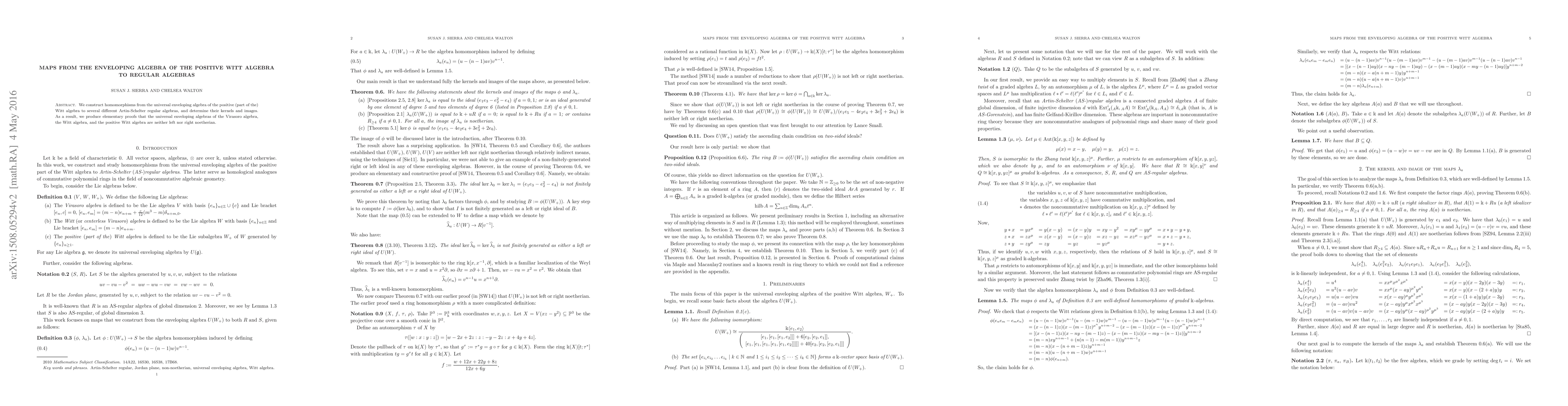 Summary: The paper constructs homomorphisms from the universal enveloping algebra of the positive Witt algebra to Artin-Schelter regular algebras, determining their kernels and images, and provides elementary proofs that these enveloping algebras are neither left nor right noetherian.
