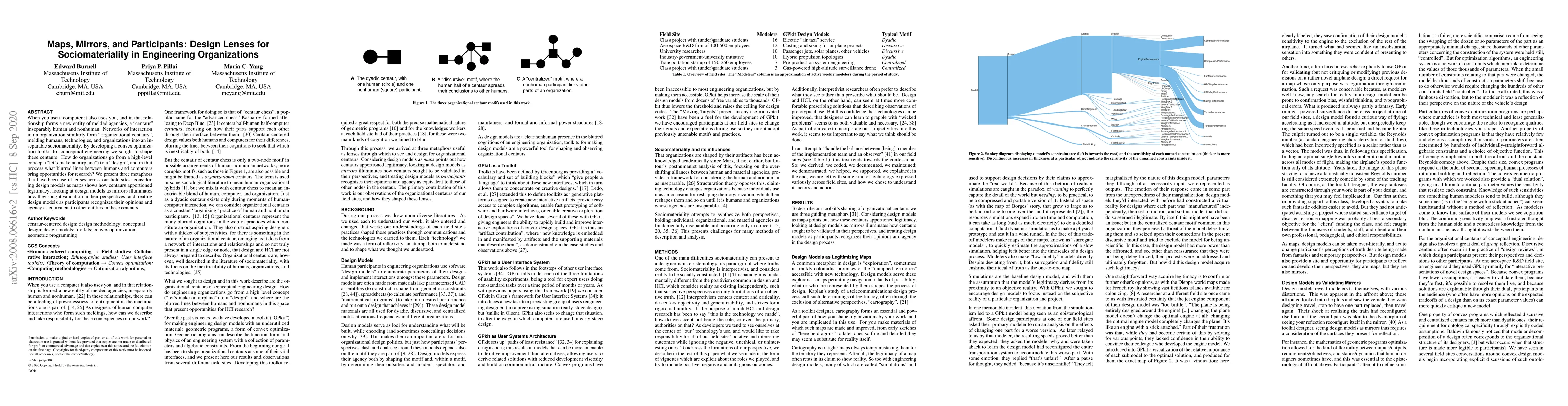 When you use a computer it also uses you, and in that relationship forms a new entity of melded agencies, a "centaur" inseparably human and nonhuman. Networks of interaction in an organization similarly form "organizational centaurs", melding humans, technologies, and organizations into an inseparable sociomateriality. By developing a convex optimization toolkit for conceptual engineering we sought to shape these centaurs. How do organizations go from a high-level concept ("let's make an airplane") to a "design", and in that process what blurred lines between humans and computers bring opportunities for research? We present three metaphors that have been useful lenses across our field sites: considering design models as maps shows how centaurs apportioned legitimacy; looking at design models as mirrors illuminates how they sought validation in their perspectives; and treating design models as participants recognizes their opinions and agency as equivalent to other entities in these centaurs.