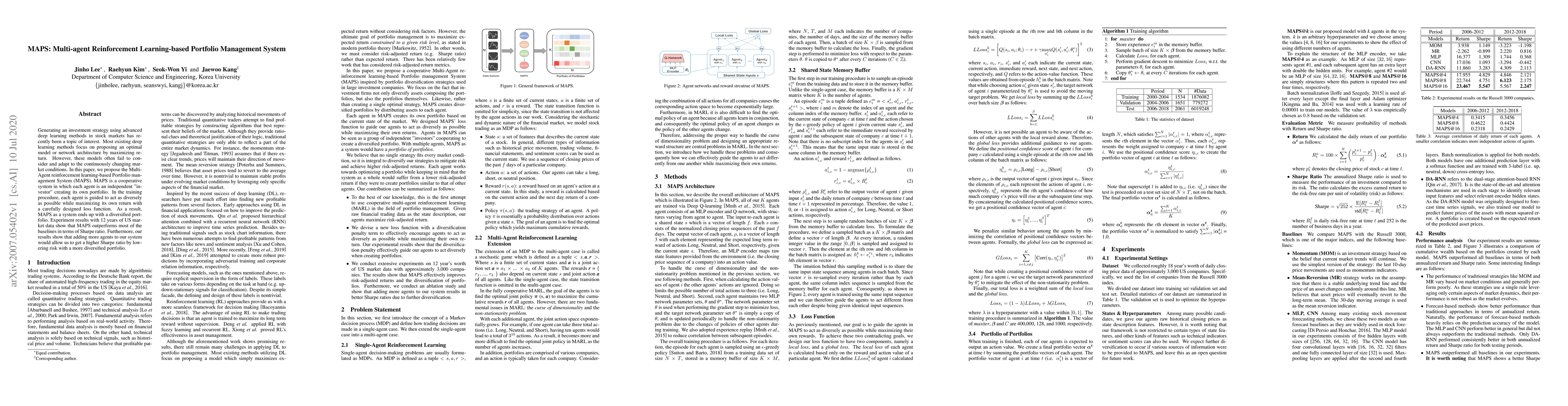 This paper introduces MAPS, a Multi-Agent reinforcement learning-based Portfolio management System that uses independent agents to create diverse portfolios. Experimental results demonstrate that MAPS outperforms baselines in terms of the Sharpe ratio, and increasing the number of agents enhances diversification and risk reduction.