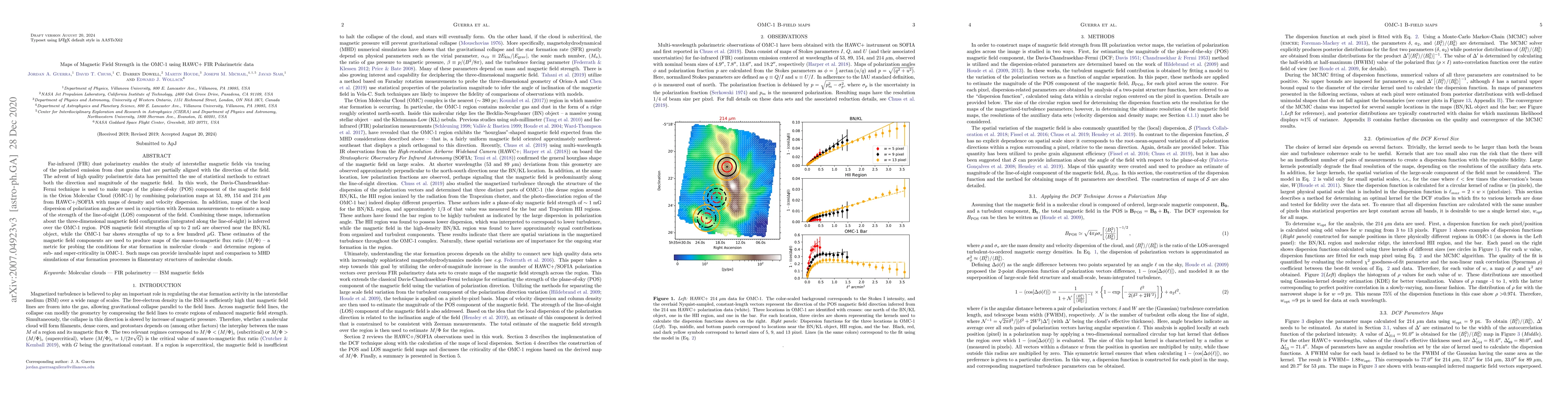 This paper uses high-quality FIR polarimetric data from HAWC+ on SOFIA to create maps of the magnetic field in the OMC-1 region of the Orion Molecular Cloud. The Davis-Chandrasekhar-Fermi technique is employed to determine both the plane-of-sky and line-of-sight components of the magnetic field, revealing strengths up to 2 mG in the plane-of-sky and hundreds of μG in the OMC-1 bar.