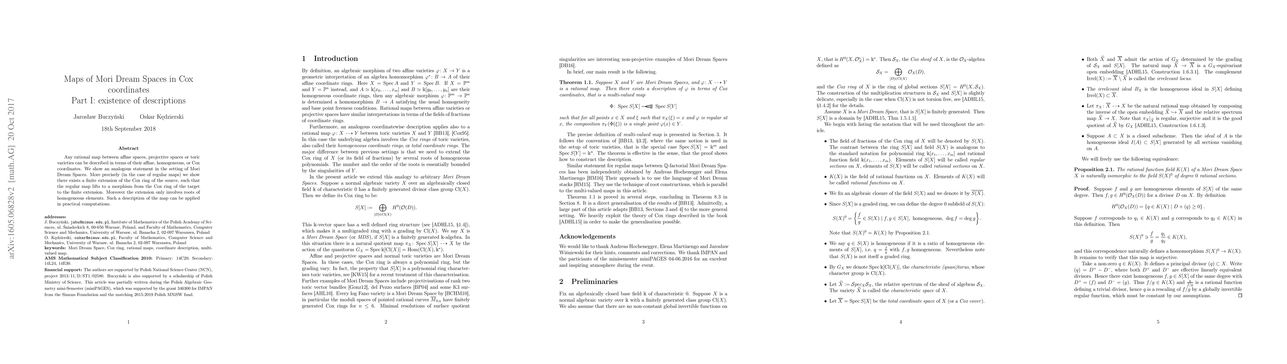Any rational map between affine spaces, projective spaces or toric varieties can be described in terms of their affine, homogeneous, or Cox coordinates. We show an analogous statement in the setting of Mori Dream Spaces. More precisely (in the case of regular maps) we show there exists a finite extension of the Cox ring of the source, such that the regular map lifts to a morphism from the Cox ring of the target to the finite extension. Moreover the extension only involves roots of homogeneous elements. Such a description of the map can be applied in practical computations.