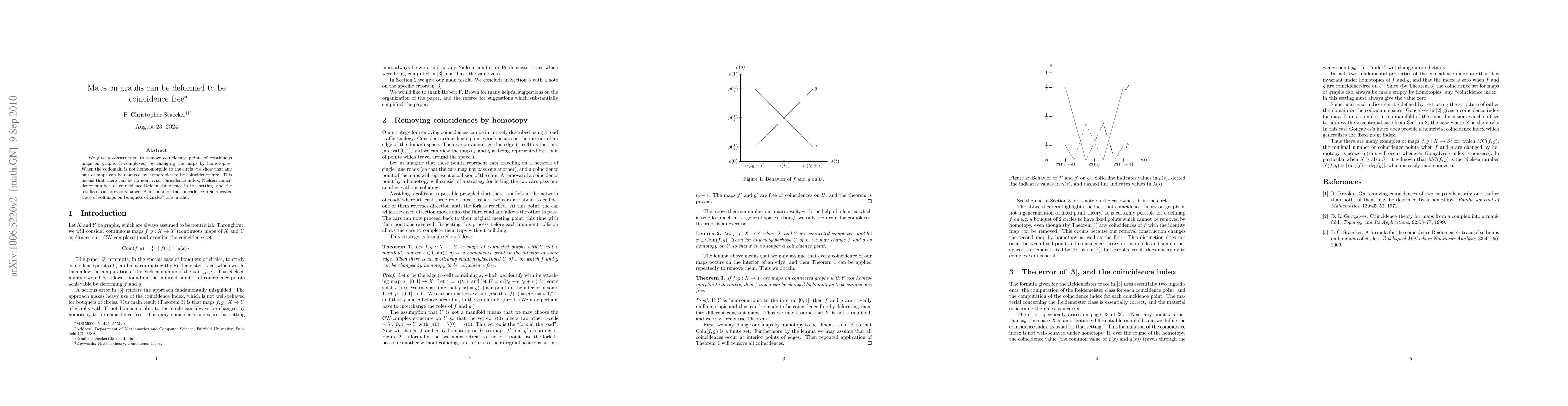 This paper constructs a method to eliminate coincidence points in continuous maps on graphs via homotopies, proving that any pair of maps can be transformed to be coincidence-free when the codomain is not homeomorphic to the circle, invalidating previous results on coincidence traces.