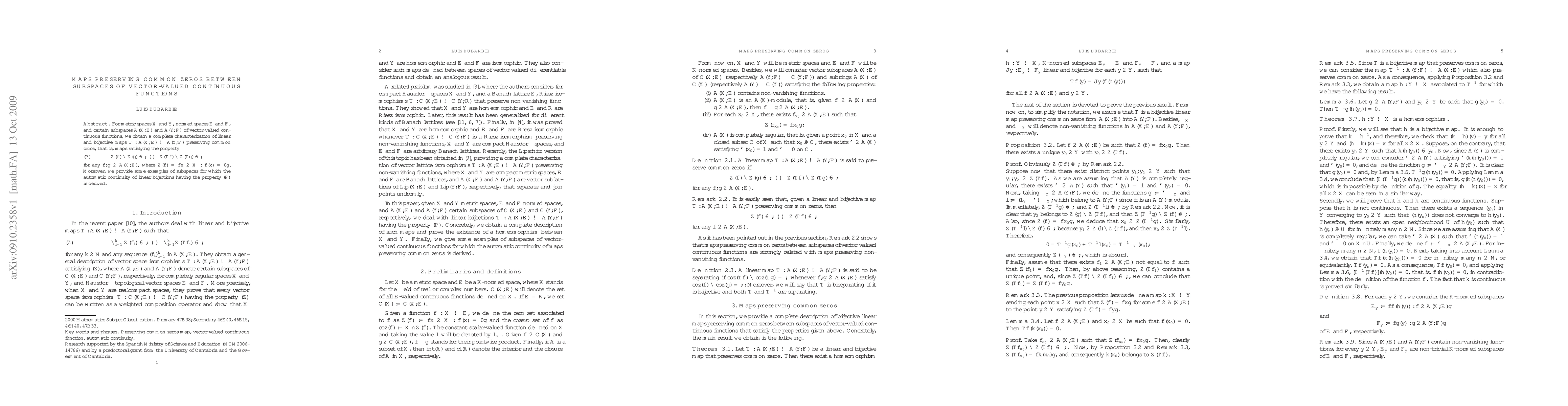 This paper characterizes linear and bijective maps between subspaces of vector-valued continuous functions that preserve common zeros, and provides examples where such maps are automatically continuous. The study focuses on metric spaces and normed spaces, offering a complete characterization of the maps satisfying the property that common zeros of functions are preserved under the mapping.