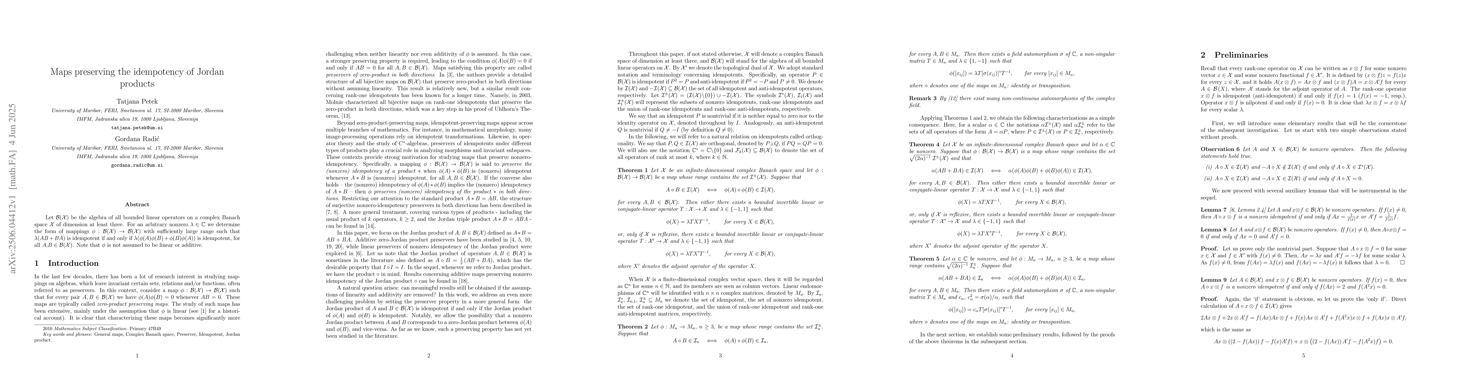 This research contributes to operator algebra by providing insights into the structure of mappings preserving idempotency of Jordan products, which has implications for understanding operator properties and transformations in Banach spaces.