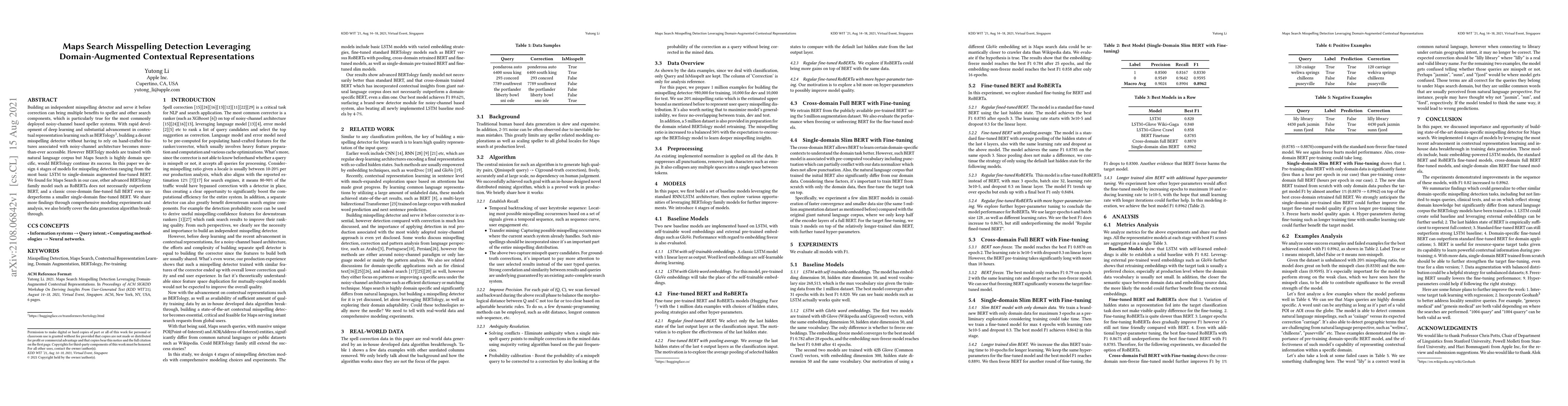 Building an independent misspelling detector and serve it before correction can bring multiple benefits to speller and other search components, which is particularly true for the most commonly deployed noisy-channel based speller systems. With rapid development of deep learning and substantial advancement in contextual representation learning such as BERTology, building a decent misspelling detector without having to rely on hand-crafted features associated with noisy-channel architecture becomes more-than-ever accessible. However BERTolgy models are trained with natural language corpus but Maps Search is highly domain specific, would BERTology continue its success. In this paper we design 4 stages of models for misspeling detection ranging from the most basic LSTM to single-domain augmented fine-tuned BERT. We found for Maps Search in our case, other advanced BERTology family model such as RoBERTa does not necessarily outperform BERT, and a classic cross-domain fine-tuned full BERT even underperforms a smaller single-domain fine-tuned BERT. We share more findings through comprehensive modeling experiments and analysis, we also briefly cover the data generation algorithm breakthrough.