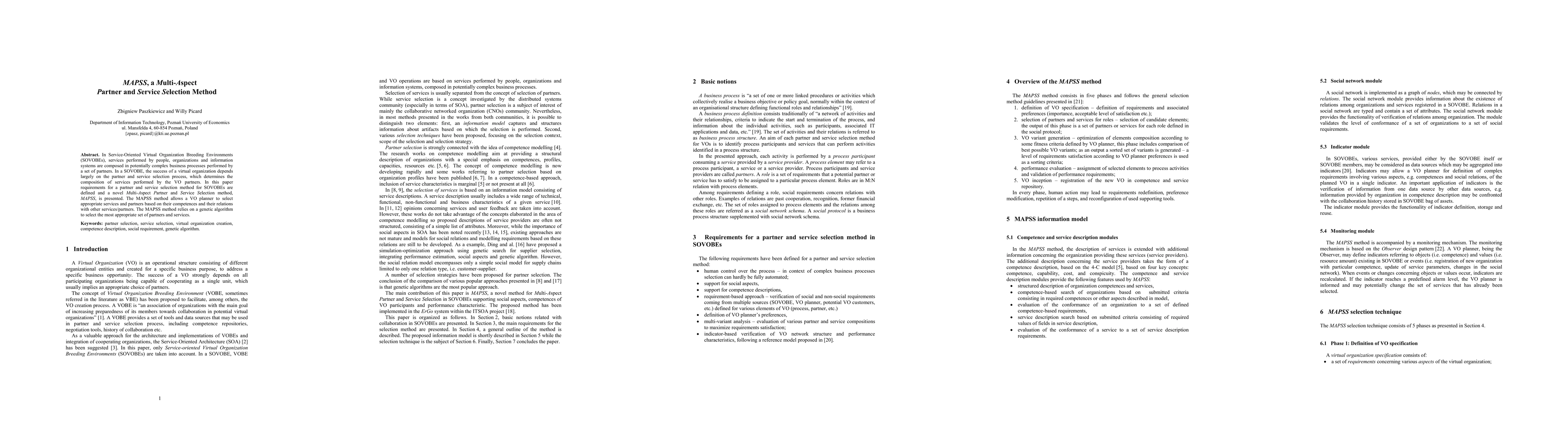 This paper introduces MAPSS, a novel Multi-Aspect Partner and Service Selection method for Service-Oriented Virtual Organization Breeding Environments (SOVOBEs). MAPSS uses a genetic algorithm to optimize the selection of partners and services based on competences and interrelations, enhancing the success of virtual organizations.