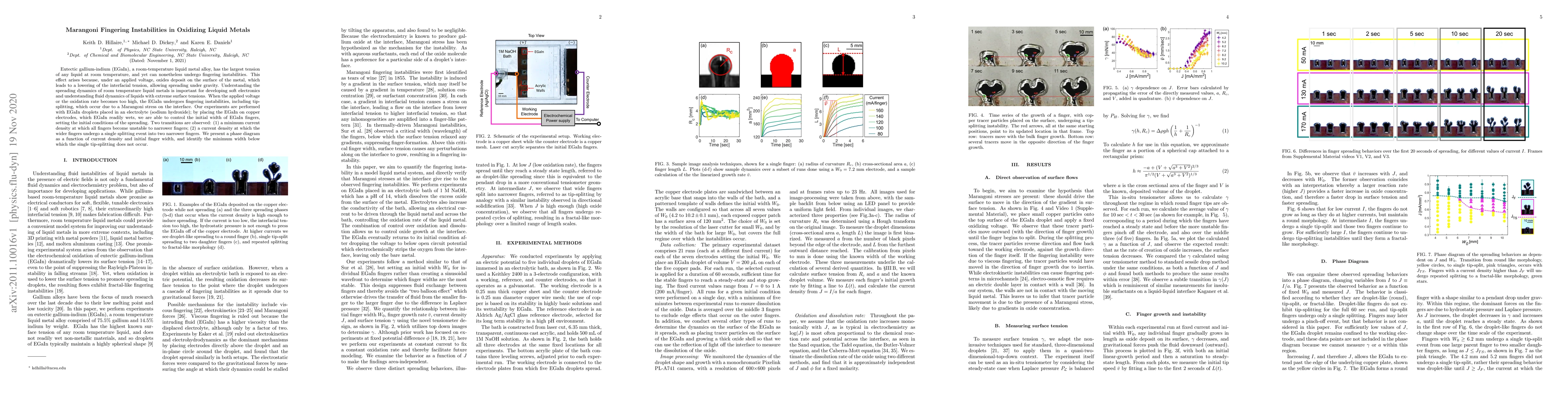 This paper investigates Marangoni fingering instabilities in eutectic gallium-indium (EGaIn) under applied voltage, leading to oxide formation and reduced surface tension. Experiments reveal two critical transitions in finger behavior, providing insights into the dynamics of liquid metals for soft electronics applications.