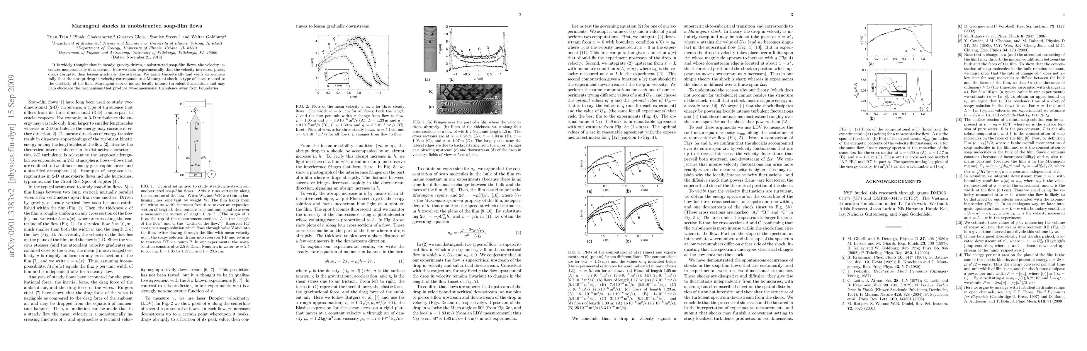 This paper experimentally demonstrates that in steady, gravity-driven soap-film flows, the velocity profile exhibits a peak followed by an abrupt drop, contrary to the common belief of monotonic increase. The authors attribute this phenomenon to Marangoni shocks, which are linked to the film's elasticity and can induce intense turbulent fluctuations, potentially shedding light on two-dimensional turbulence mechanisms.