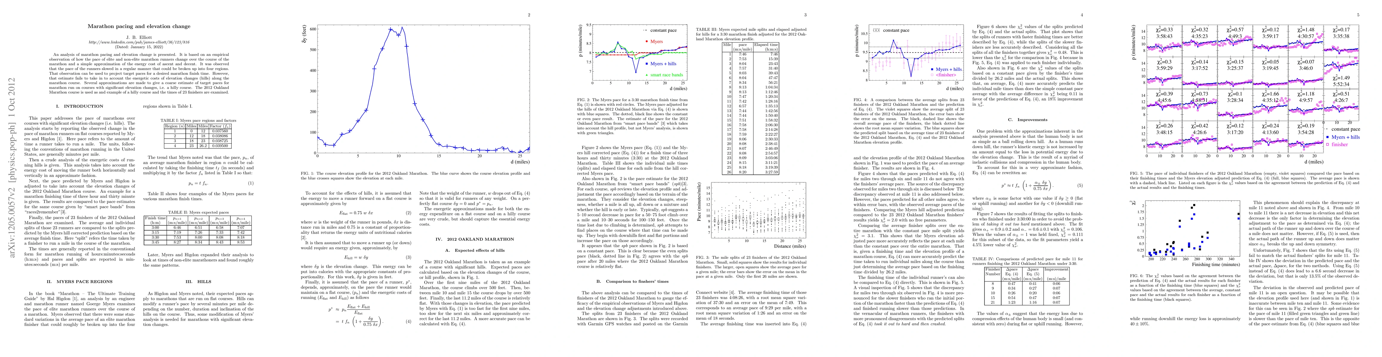 This study analyzes marathon pacing patterns and the impact of elevation changes on runner speed. It identifies four distinct pace regions and provides a method to estimate target paces for desired finish times, though it overlooks the energy costs of elevation changes. An approximation method is proposed to account for hilly courses, demonstrated using the 2012 Oakland Marathon.
