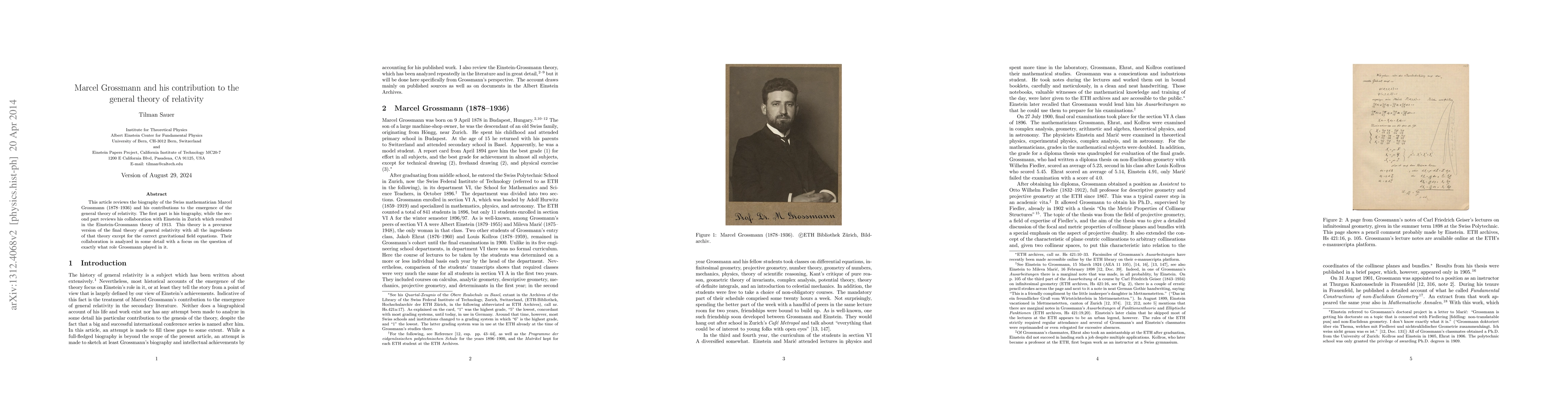 This paper reviews Marcel Grossmann's biography and his collaboration with Einstein in developing a precursor theory of general relativity, known as the Einstein-Grossmann theory, in 1913. The paper analyzes their collaboration to understand Grossmann's role in shaping this early version of the general theory of relativity.