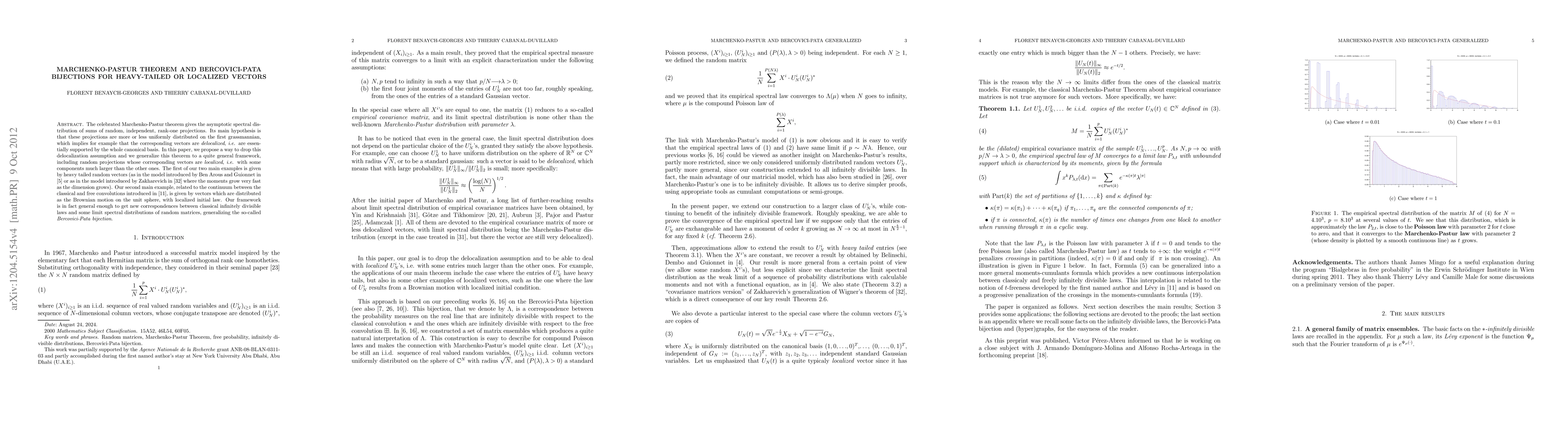 The celebrated Marchenko-Pastur theorem gives the asymptotic spectral distribution of sums of random, independent, rank-one projections. Its main hypothesis is that these projections are more or less uniformly distributed on the first grassmannian, which implies for example that the corresponding vectors are delocalized, i.e. are essentially supported by the whole canonical basis. In this paper, we propose a way to drop this delocalization assumption and we generalize this theorem to a quite general framework, including random projections whose corresponding vectors are localized, i.e. with some components much larger than the other ones. The first of our two main examples is given by heavy tailed random vectors (as in a model introduced by Ben Arous and Guionnet or as in a model introduced by Zakharevich where the moments grow very fast as the dimension grows). Our second main example is given by vectors which are distributed as the Brownian motion on the unit sphere, with localized initial law. Our framework is in fact general enough to get new correspondences between classical infinitely divisible laws and some limit spectral distributions of random matrices, generalizing the so-called Bercovici-Pata bijection.