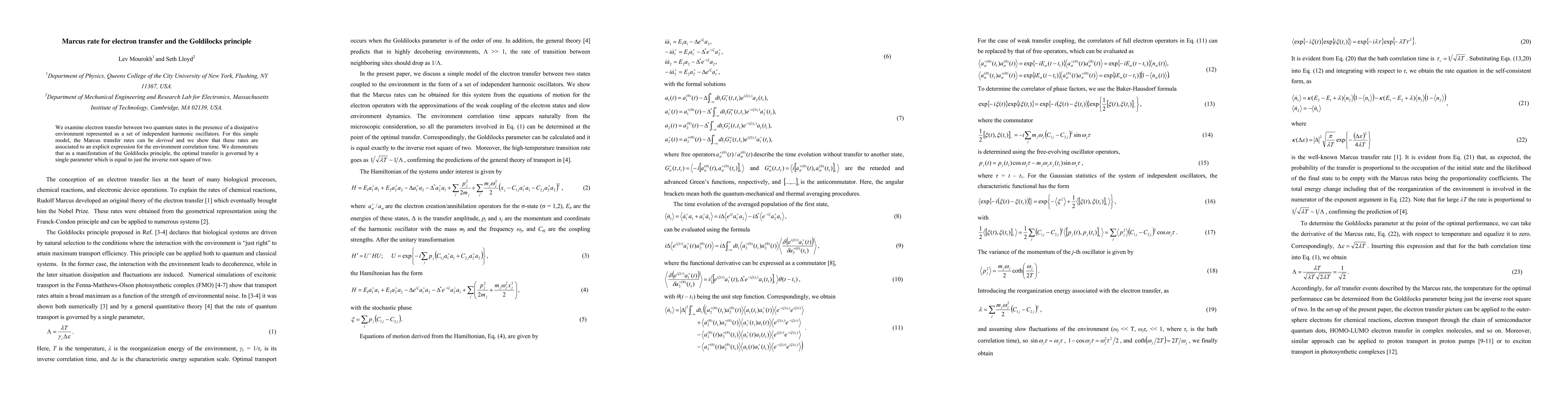 Researchers found that electron transfer rates can be predicted using a single parameter related to environmental correlation time, following the Goldilocks principle. This principle suggests an optimal balance for efficient energy transfer.