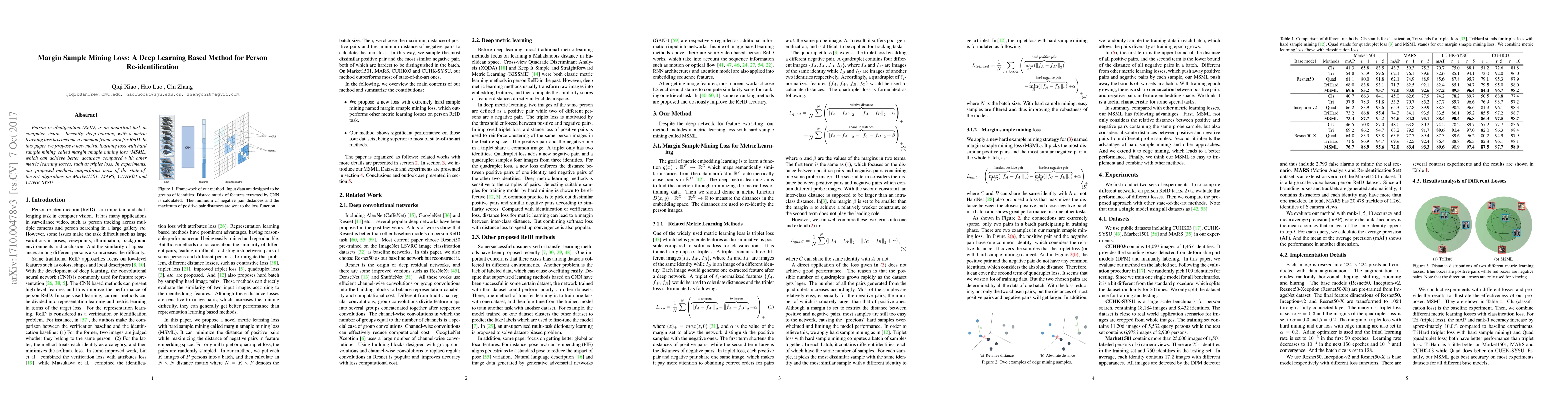 A new deep learning-based method called Margin Sample Mining Loss (MSML) is proposed for person re-identification, achieving better accuracy than state-of-the-art algorithms on multiple datasets.
