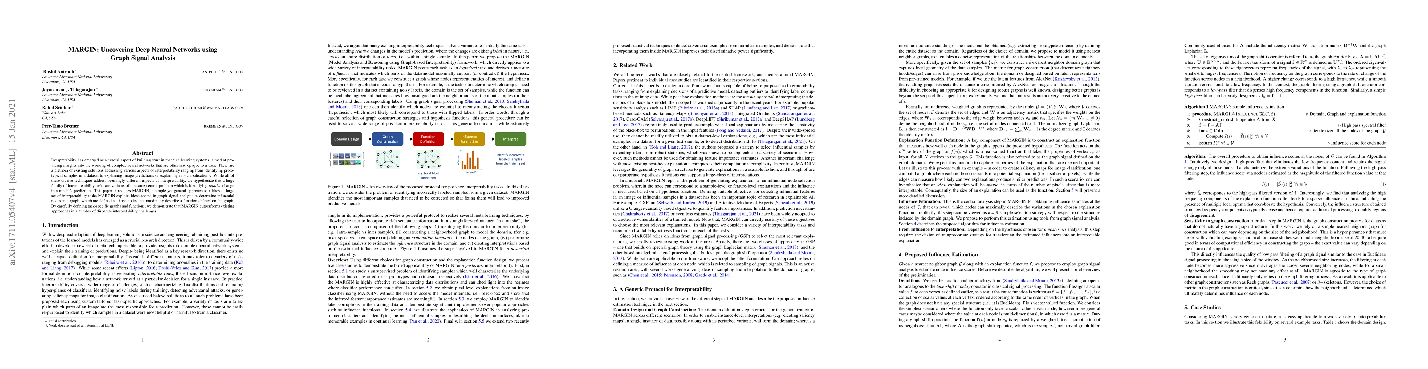 Interpretability has emerged as a crucial aspect of building trust in machine learning systems, aimed at providing insights into the working of complex neural networks that are otherwise opaque to a user. There are a plethora of existing solutions addressing various aspects of interpretability ranging from identifying prototypical samples in a dataset to explaining image predictions or explaining mis-classifications. While all of these diverse techniques address seemingly different aspects of interpretability, we hypothesize that a large family of interepretability tasks are variants of the same central problem which is identifying \emph{relative} change in a model's prediction. This paper introduces MARGIN, a simple yet general approach to address a large set of interpretability tasks MARGIN exploits ideas rooted in graph signal analysis to determine influential nodes in a graph, which are defined as those nodes that maximally describe a function defined on the graph. By carefully defining task-specific graphs and functions, we demonstrate that MARGIN outperforms existing approaches in a number of disparate interpretability challenges.