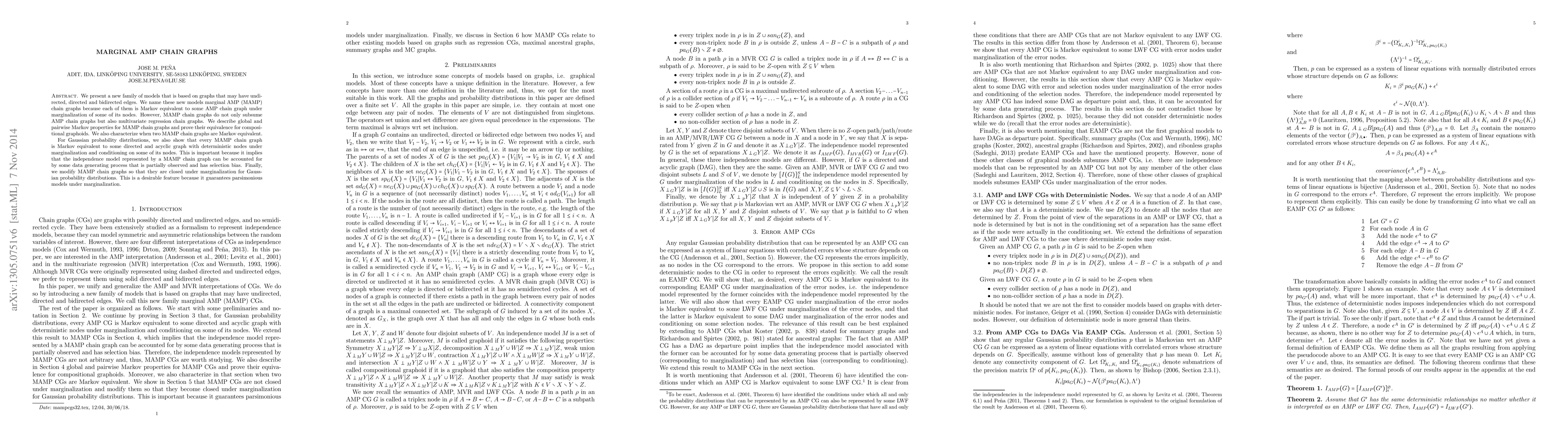 We present a new family of models that is based on graphs that may have undirected, directed and bidirected edges. We name these new models marginal AMP (MAMP) chain graphs because each of them is Markov equivalent to some AMP chain graph under marginalization of some of its nodes. However, MAMP chain graphs do not only subsume AMP chain graphs but also multivariate regression chain graphs. We describe global and pairwise Markov properties for MAMP chain graphs and prove their equivalence for compositional graphoids. We also characterize when two MAMP chain graphs are Markov equivalent. For Gaussian probability distributions, we also show that every MAMP chain graph is Markov equivalent to some directed and acyclic graph with deterministic nodes under marginalization and conditioning on some of its nodes. This is important because it implies that the independence model represented by a MAMP chain graph can be accounted for by some data generating process that is partially observed and has selection bias. Finally, we modify MAMP chain graphs so that they are closed under marginalization for Gaussian probability distributions. This is a desirable feature because it guarantees parsimonious models under marginalization.