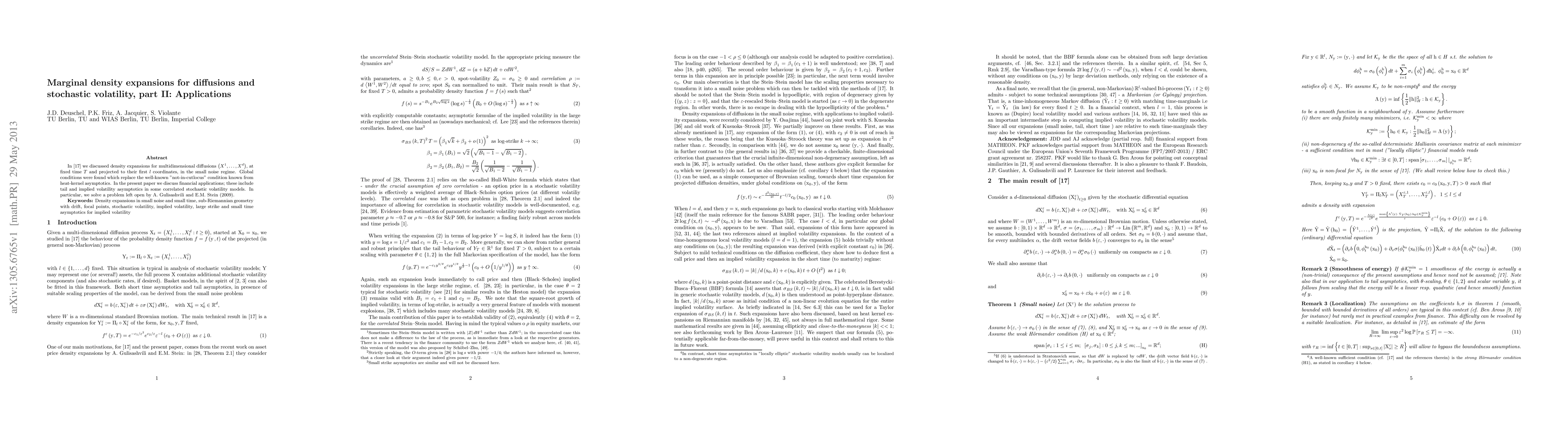This paper builds on previous work to provide density expansions for diffusions in the small noise regime, focusing on applications to financial models. It specifically addresses tail and implied volatility asymptotics in correlated stochastic volatility models, solving a problem left unresolved by Gulisashvili and Stein (2009).