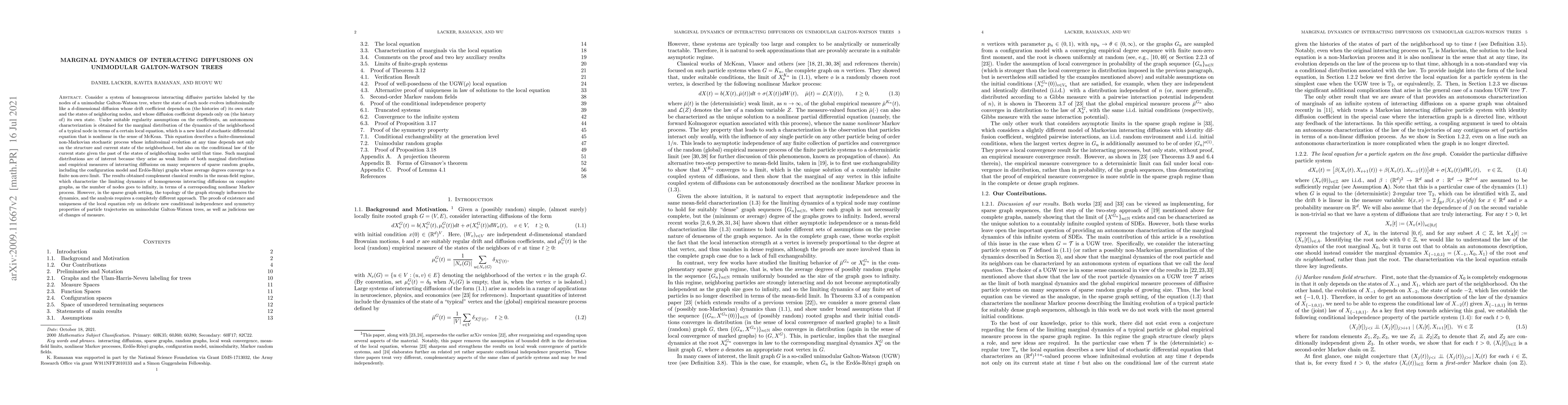 This paper studies the marginal dynamics of interacting diffusions on unimodular Galton-Watson trees, deriving an autonomous characterization for the marginal distribution of a typical node's neighborhood via a novel local SDE. The results complement classical mean-field dynamics on complete graphs by accounting for the influence of sparse graph topology.