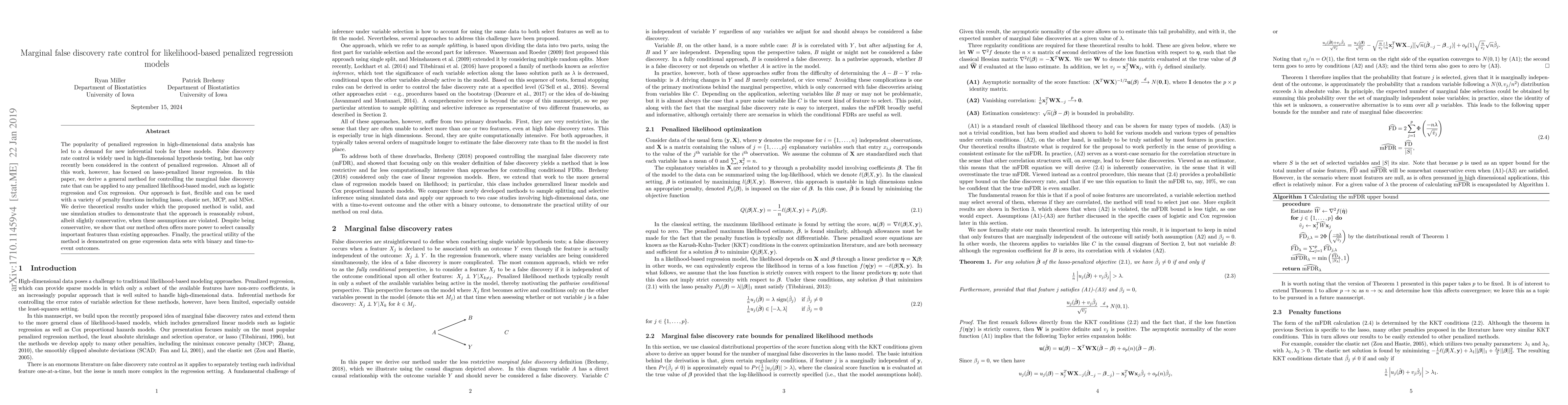 This paper proposes a new method for controlling the marginal false discovery rate in penalized likelihood-based regression models, applicable to various penalties and model types. It demonstrates theoretical validity and practical robustness, often providing greater power for feature selection compared to existing methods.